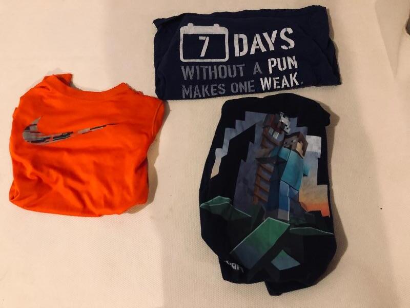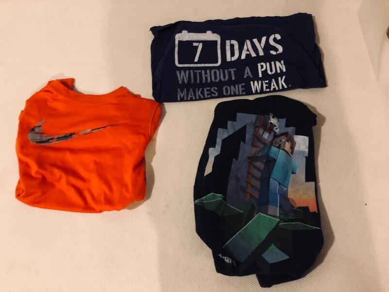 Boys sz 8 t shirts Includes Nike, Minecraft and pun shirt