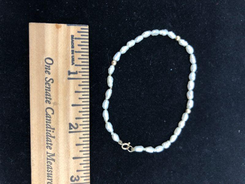 Dainty Freshwater Pearl Bracelet. 14k clasp and accent beads. 7" bracelet.