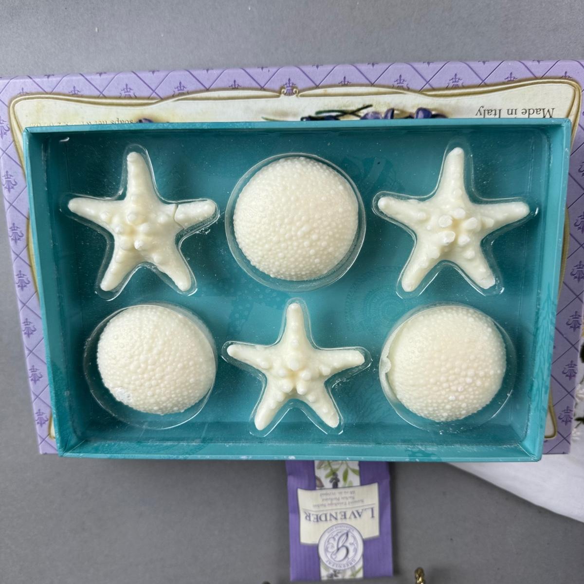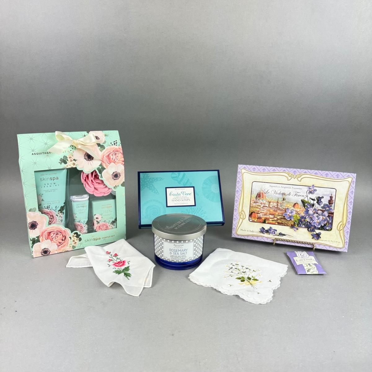 BR328 Lot of French Milled Soap with Candle and Handkerchiefs