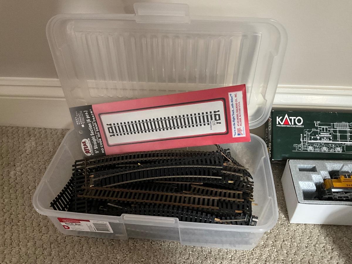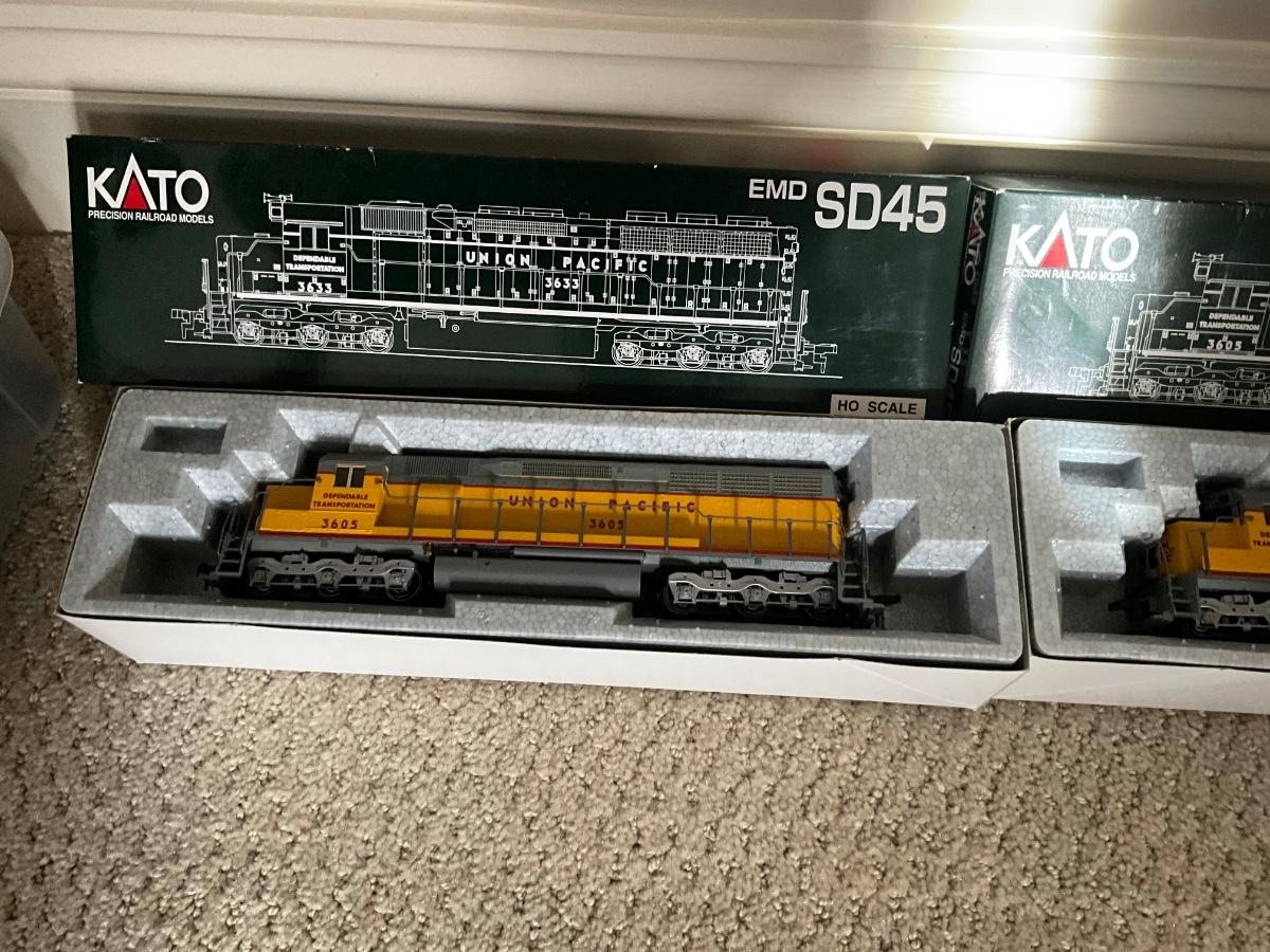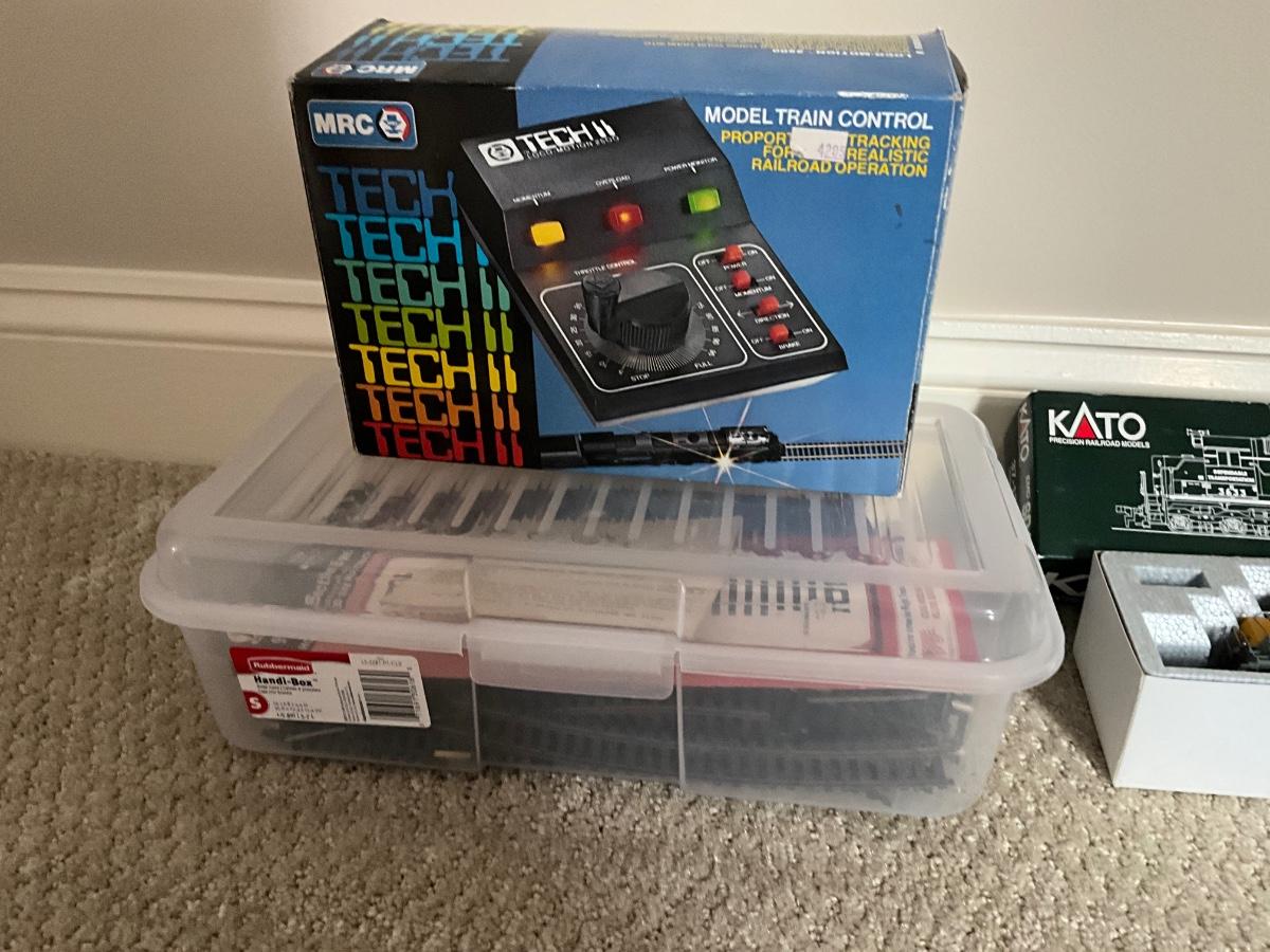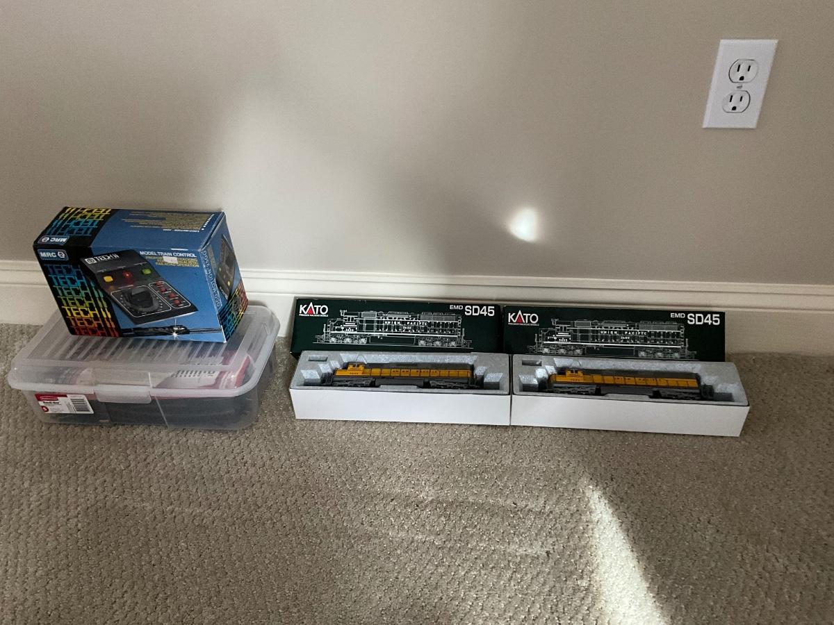 Comes with Tech II model train control (2) KATO EMD SD45, Box of train tracks