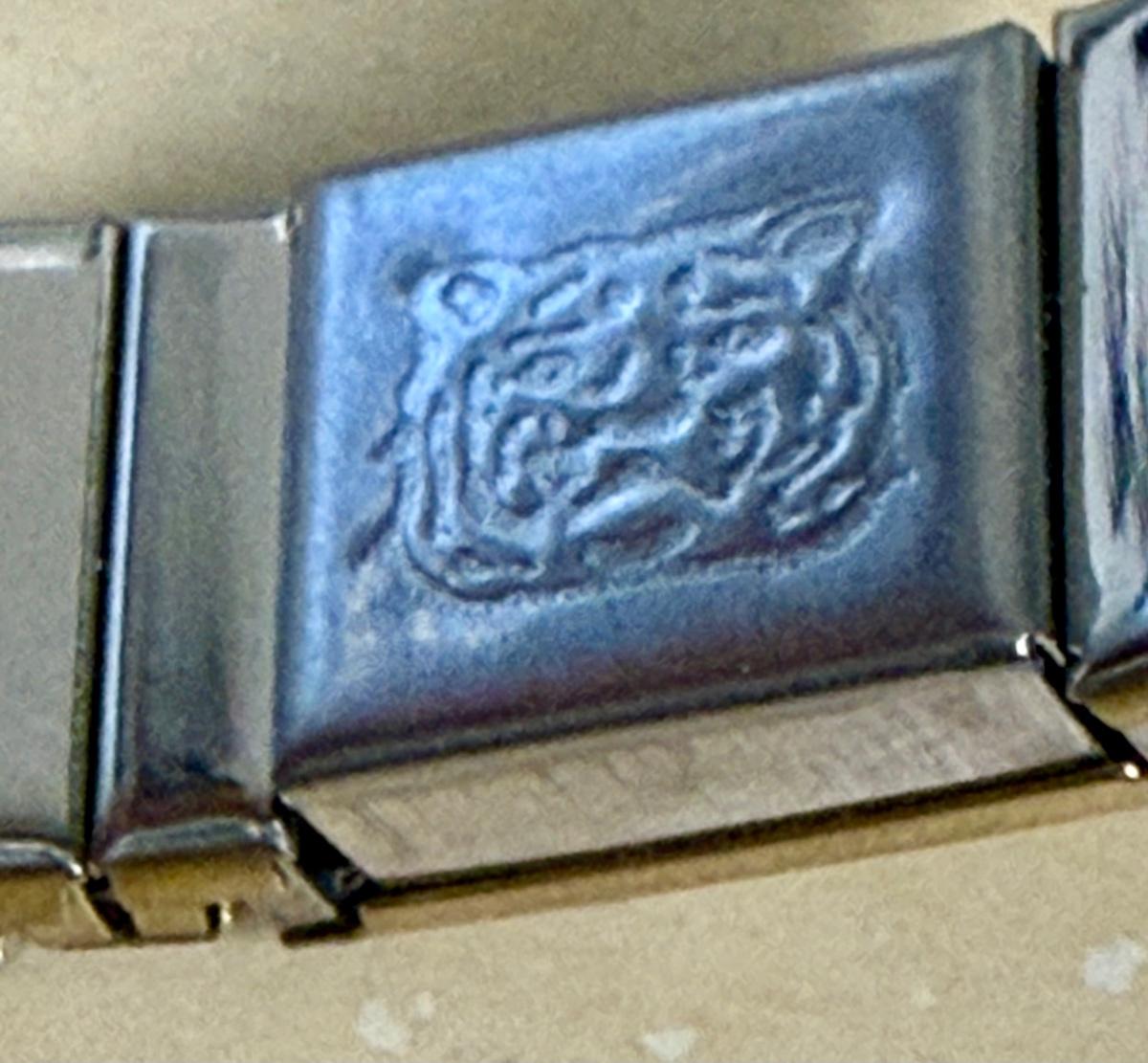 TtttttTiger face on the inside of the silver tone links. Good condition