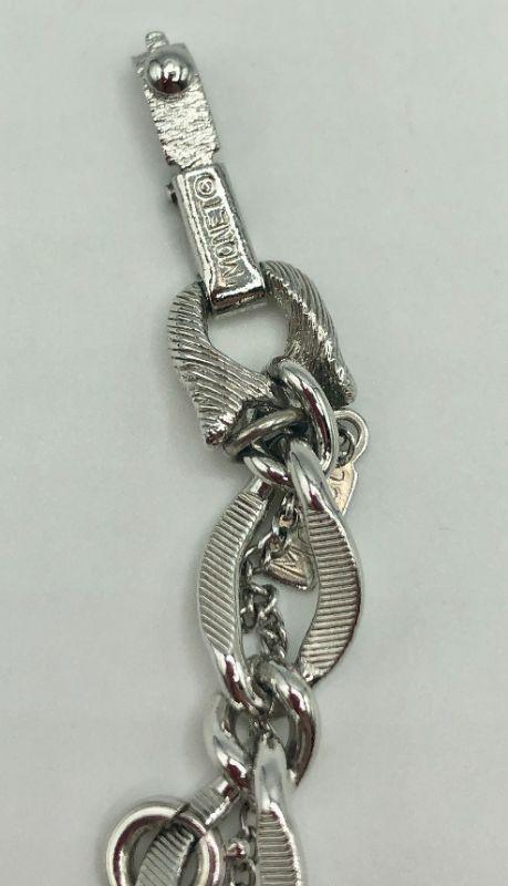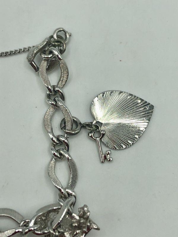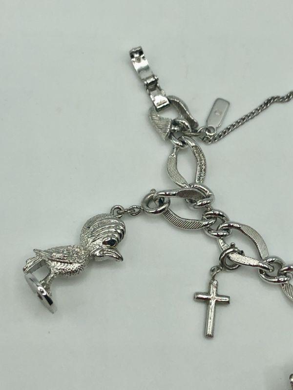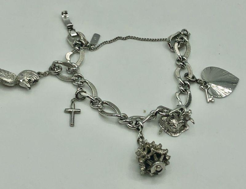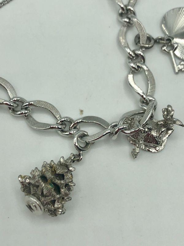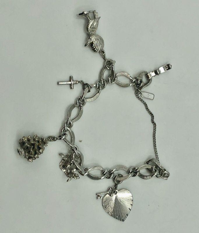 Silver-tone Christmas-themed charm bracelet with 5 charms.