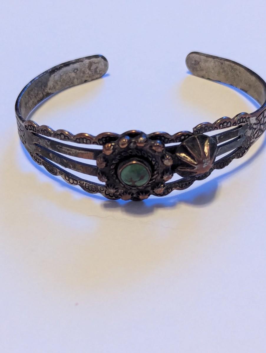 Vintage Sterling Fred Harvey Era Style Turquoise Cuff Bracelet Unmarked #6