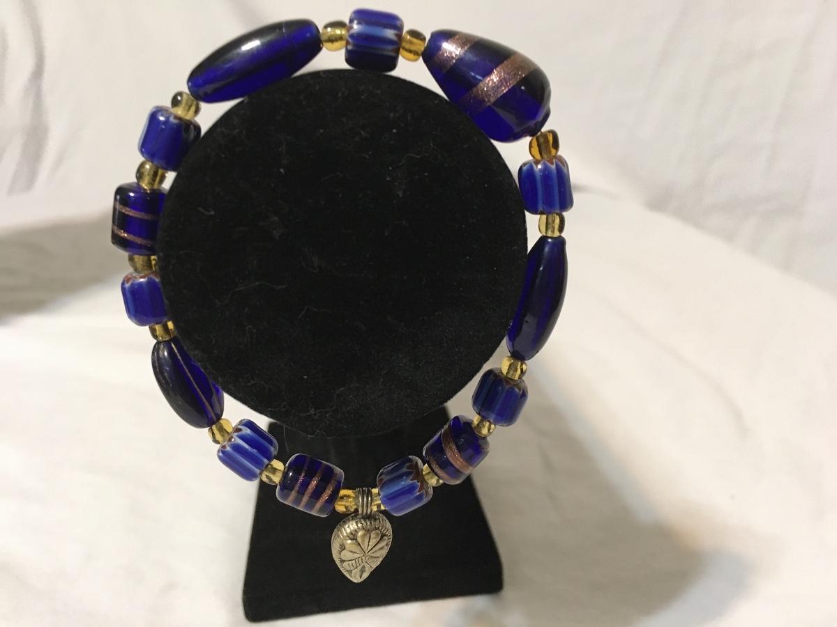Nice bracelet glass beads with charm Please see attached photos