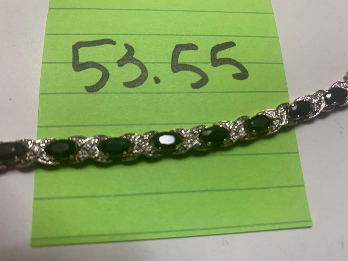 stones are black/dark blue. Bracelet is 7 1/4" long