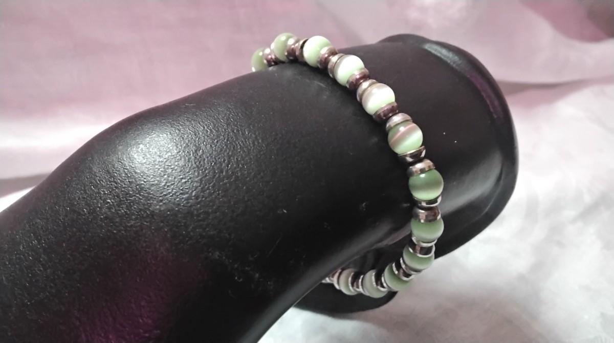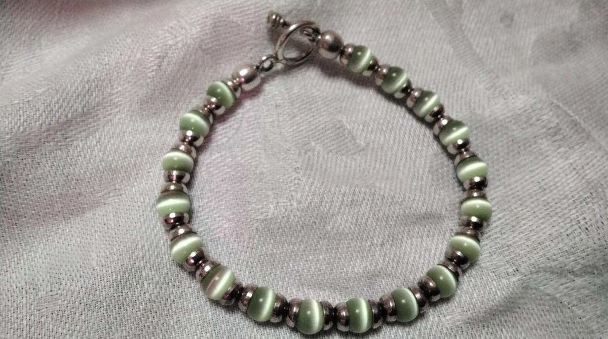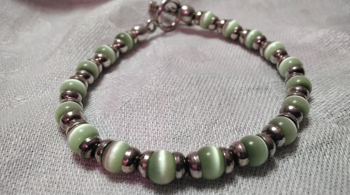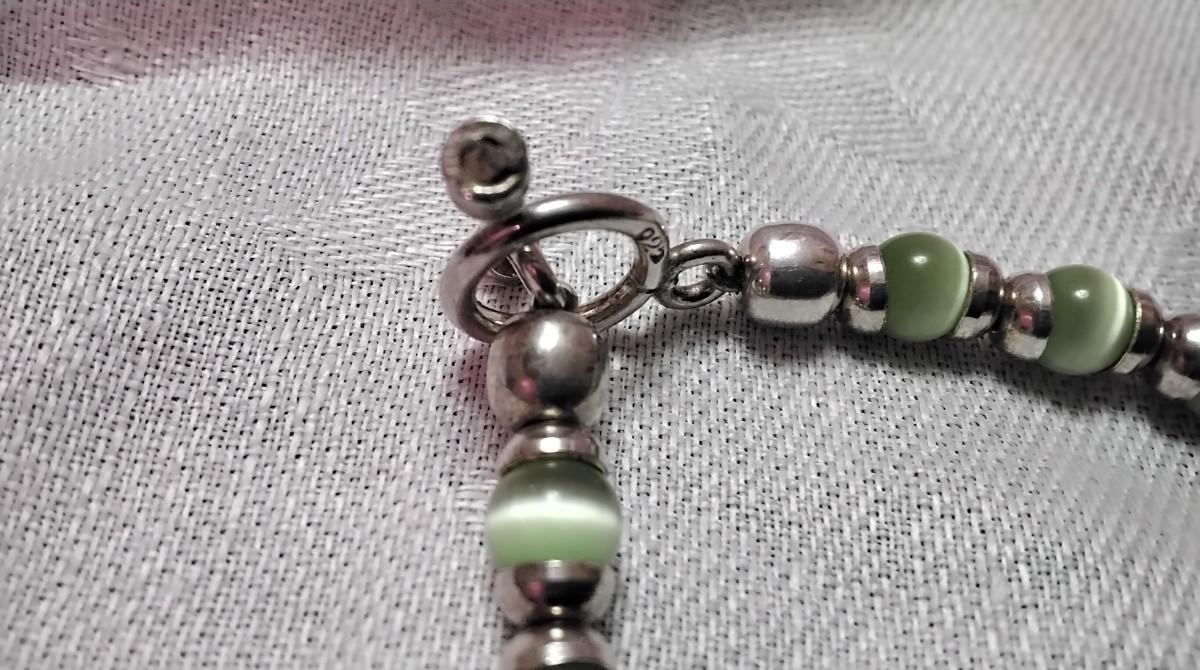 Stunning Vintage Green Cat's Eye 7" 925 Bracelet