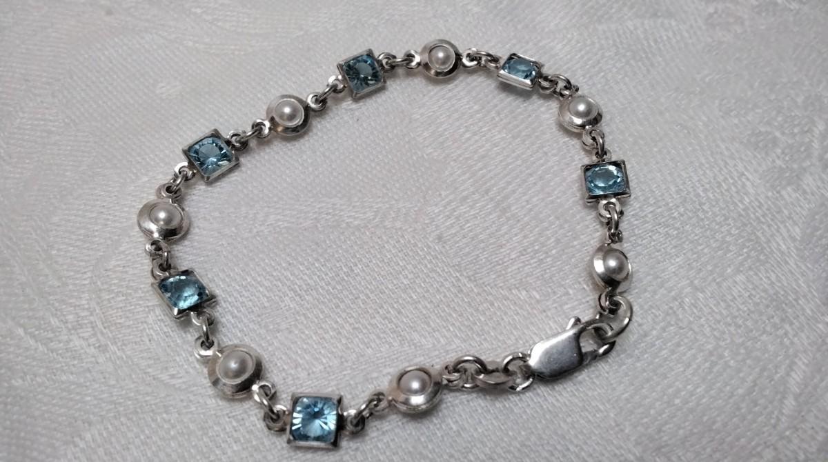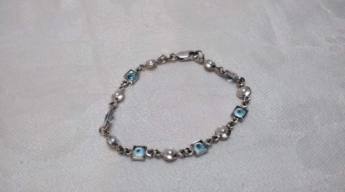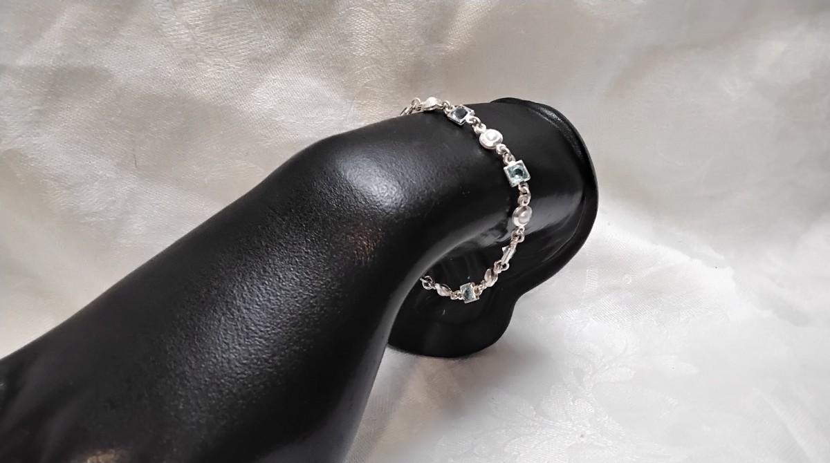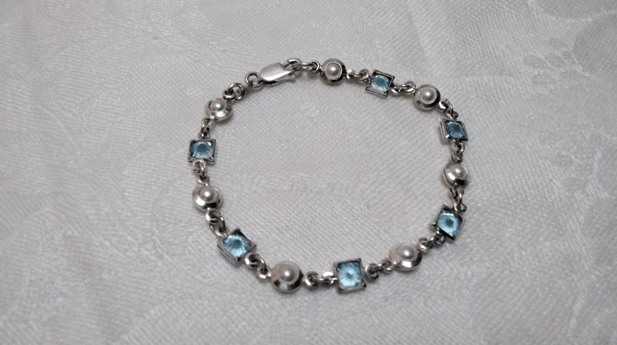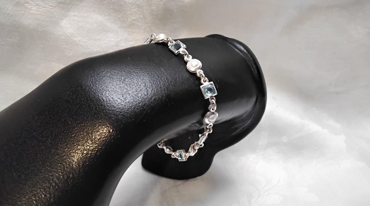 Aquamarine With FW Pearl Accents 7"  925 Bracelet