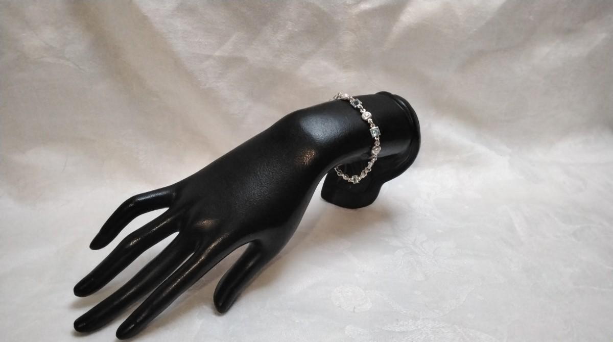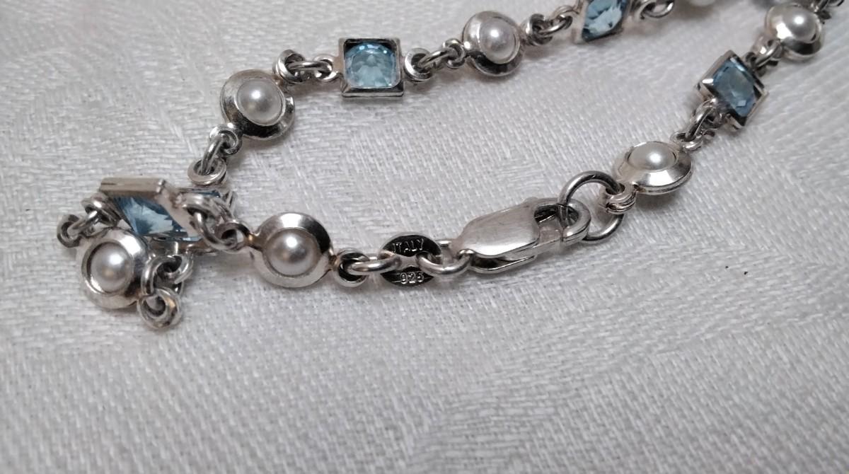 Stunning bracelet. Whoever thought about the pearl and aquamarine combination was brilliant! It's beautiful!