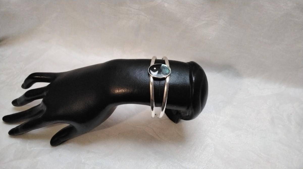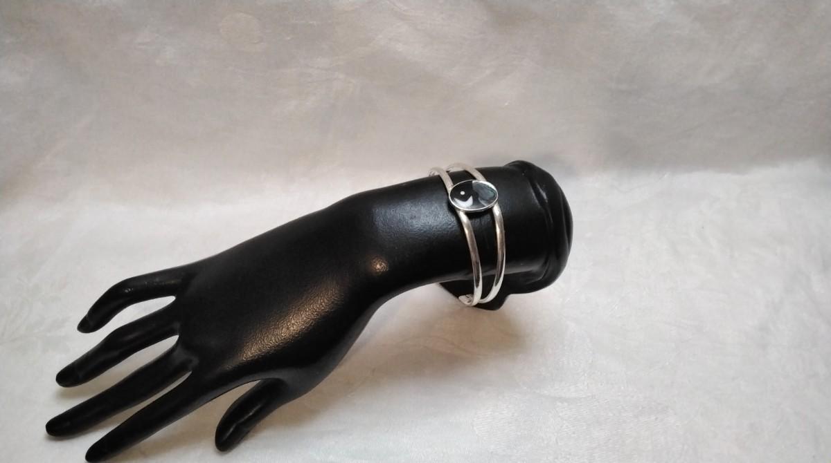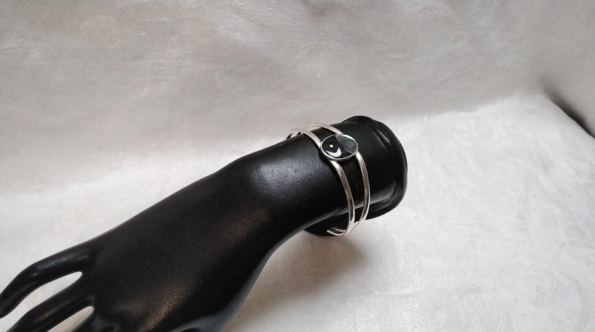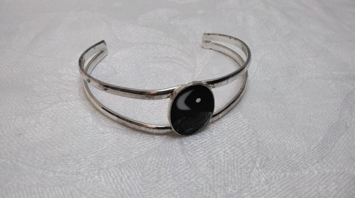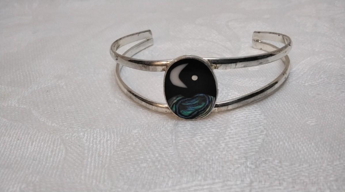 Vintage Onyx and Abalone Day/Night Alpaca Bracelet