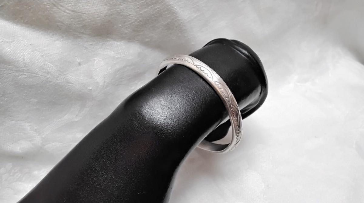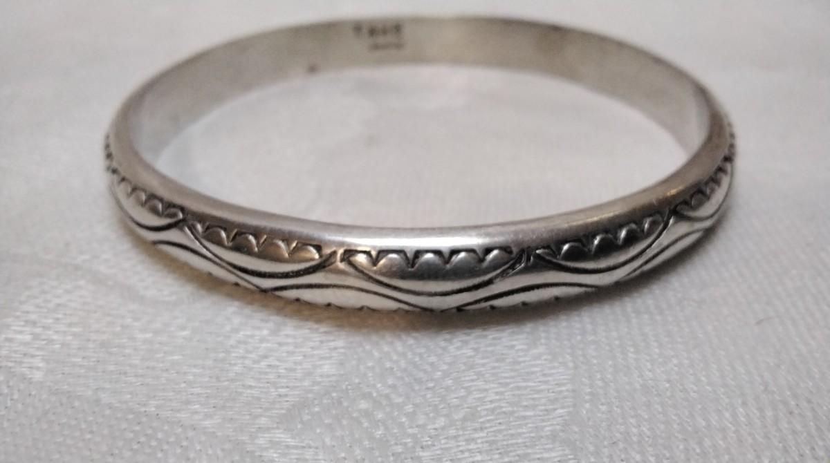Vintage Navajo Hand Stamped Handmade Signed TAHE 2;5" 925 Bracelet