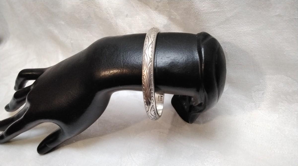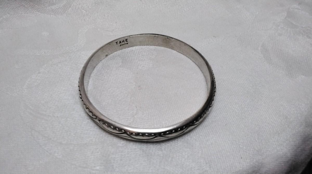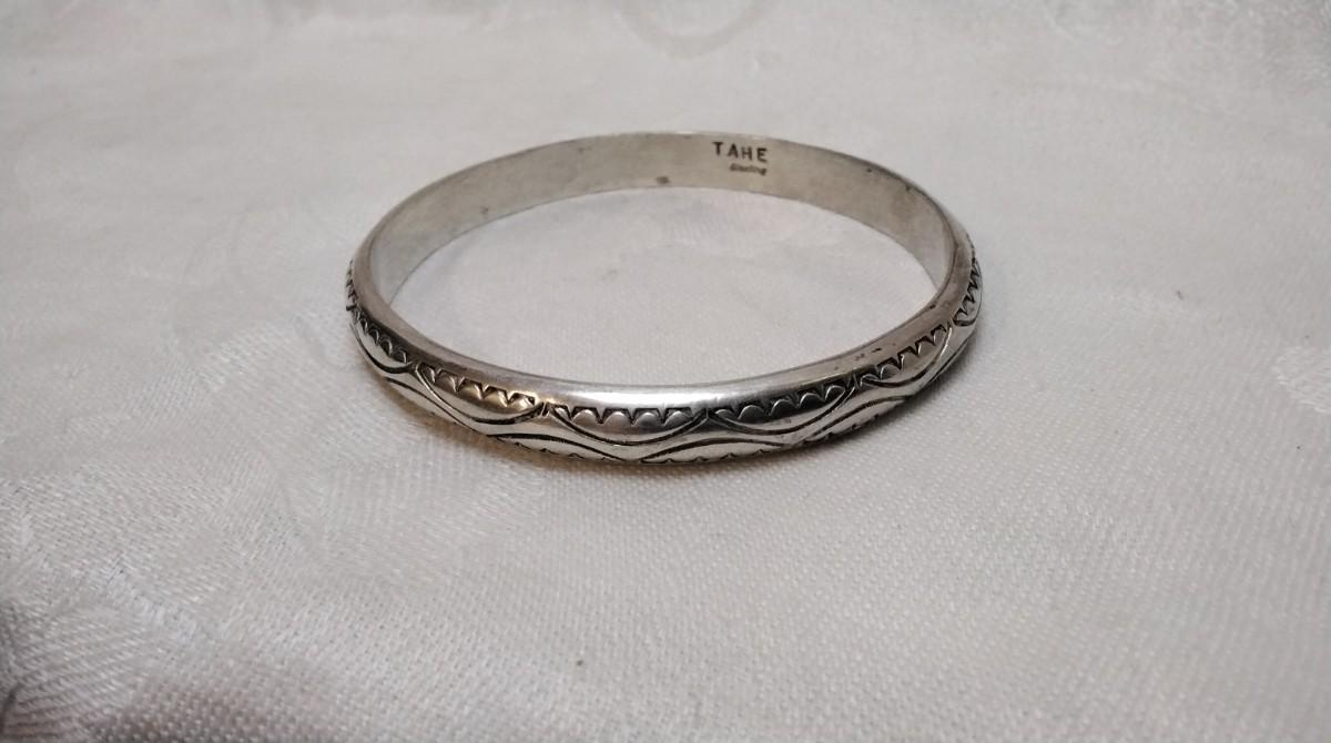 Vintage Navajo Hand Stamped Handmade Signed TAHE 2;5"  925 Bracelet