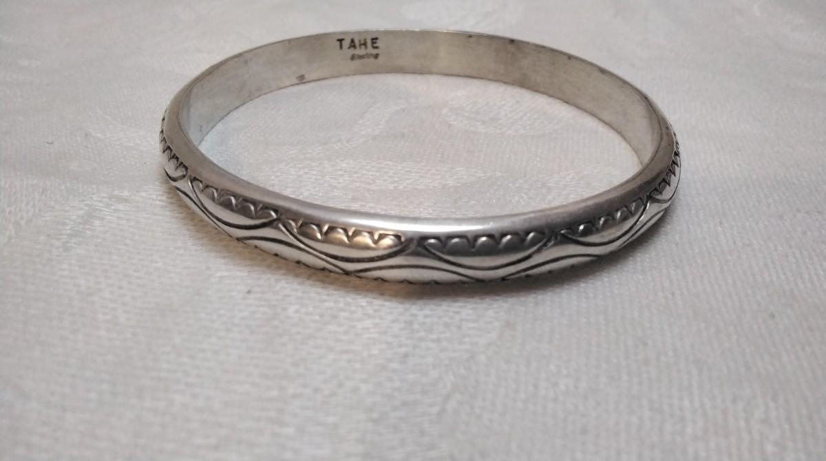 Some of the top Silversmiths in American Native jewelry the Tahe family is well know for their heavy handmade Navajo silver bracelets. Their pieces have remained sound investments since the 1950s.