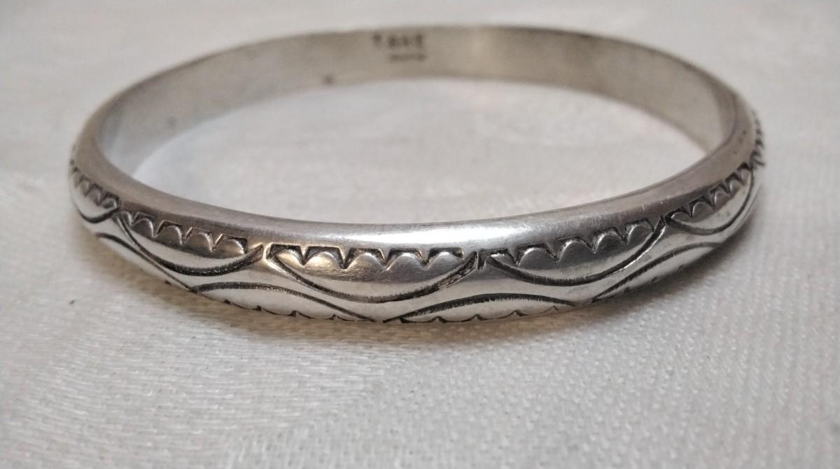 Vintage Navajo Hand Stamped Handmade Signed TAHE 2;5" 925 Bracelet