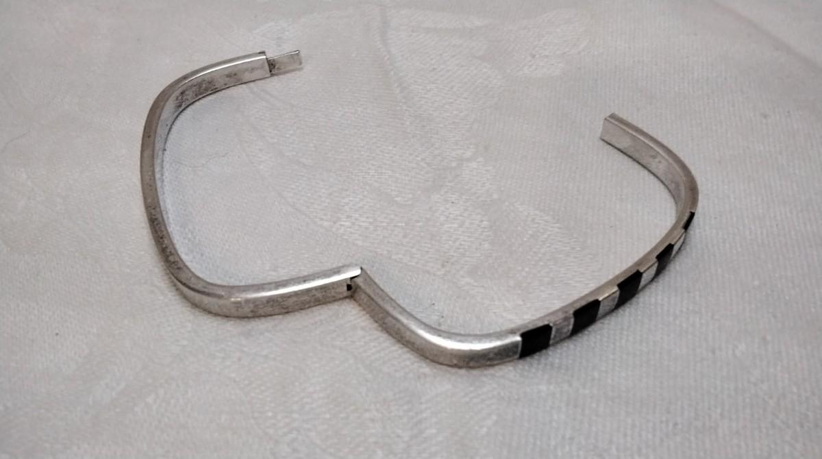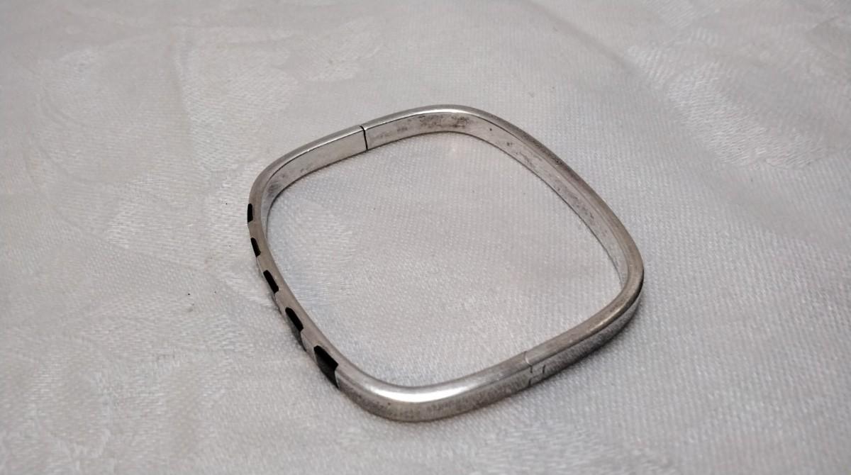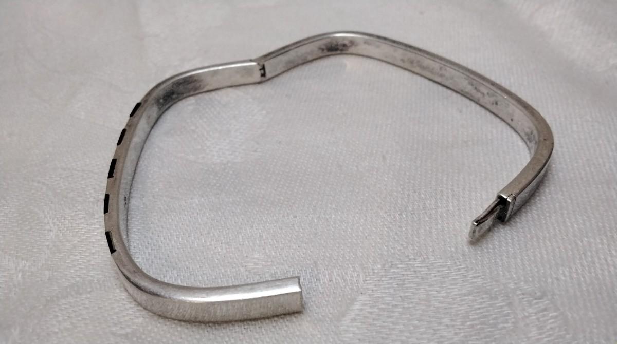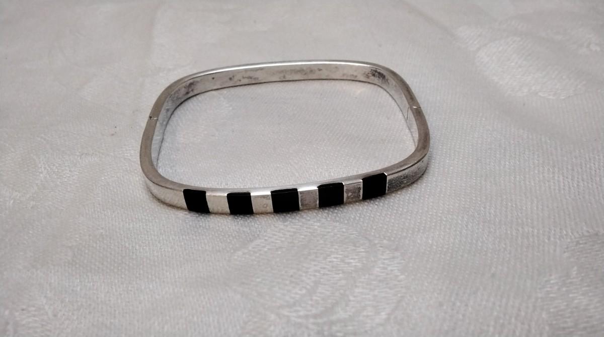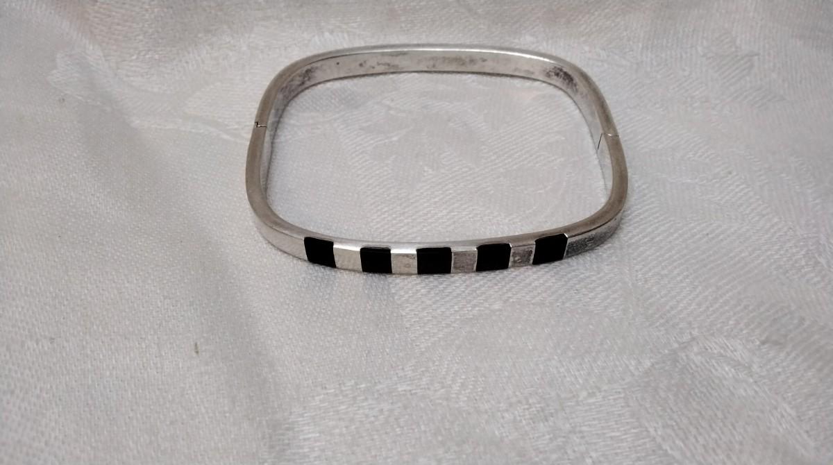 Unique Black Onyx Inset In 2" Rounded Square Bracelet