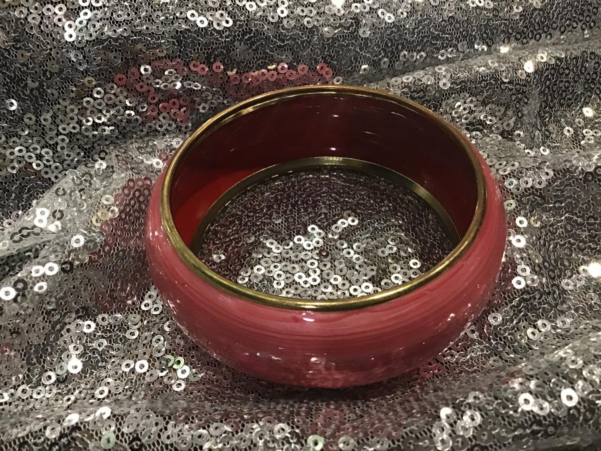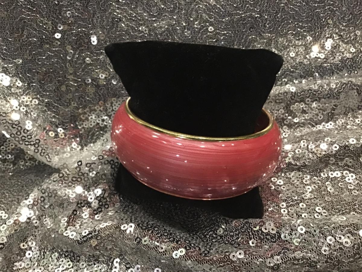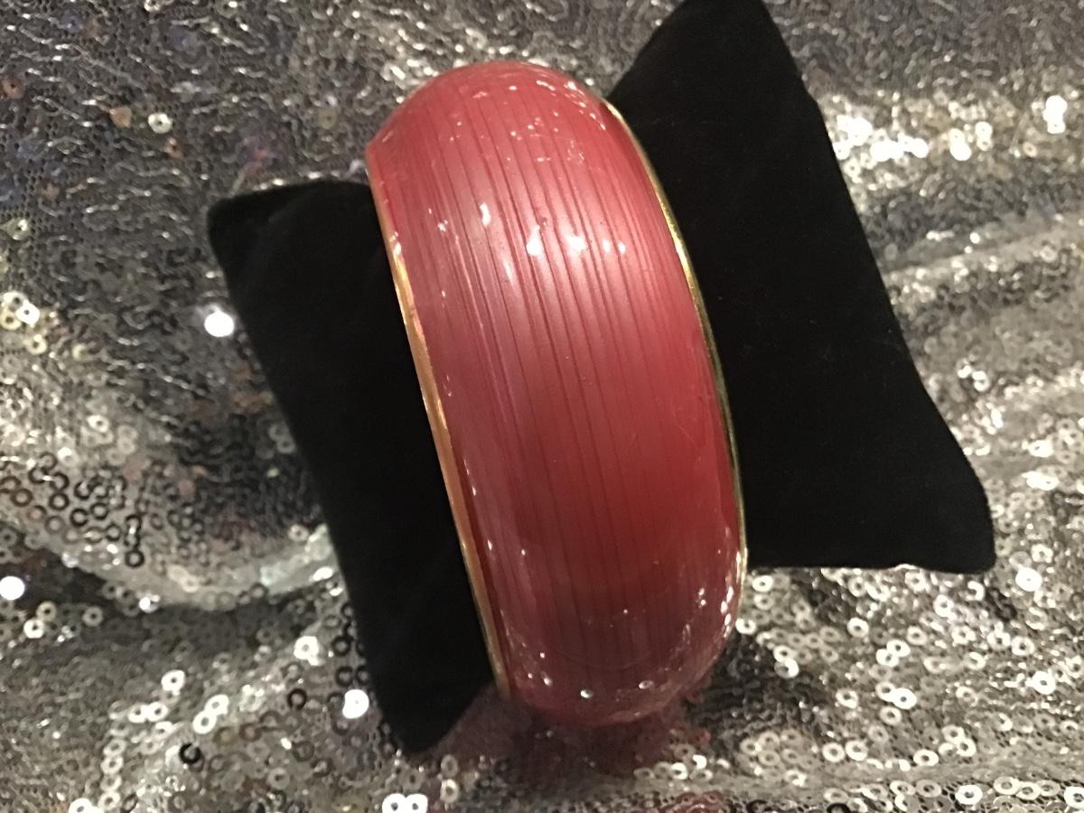 Bracelet Bangle Satin Fushia Enameled Gold Tone Fashion Jewelry