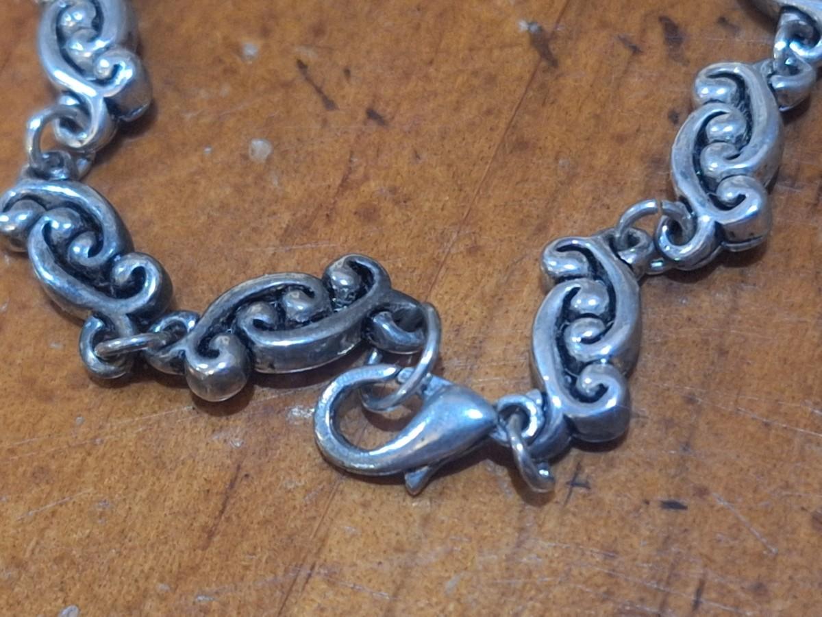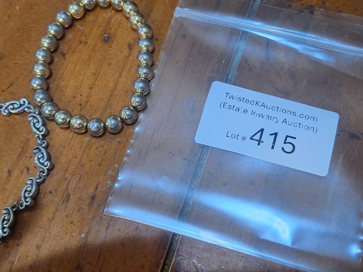 Costume jewelry. the one on the left sticks to a magnet the beaded one does not but it has no markings to indicate it is anything other than costume.