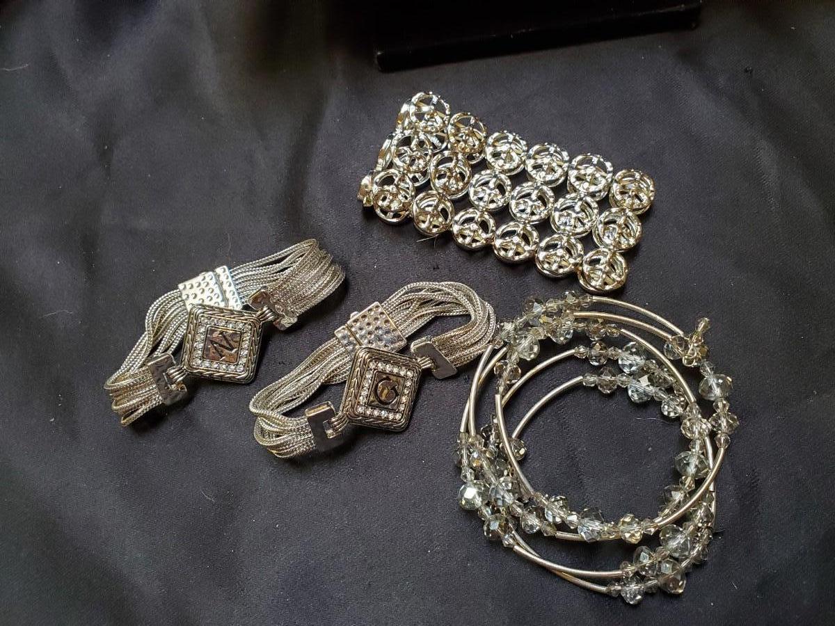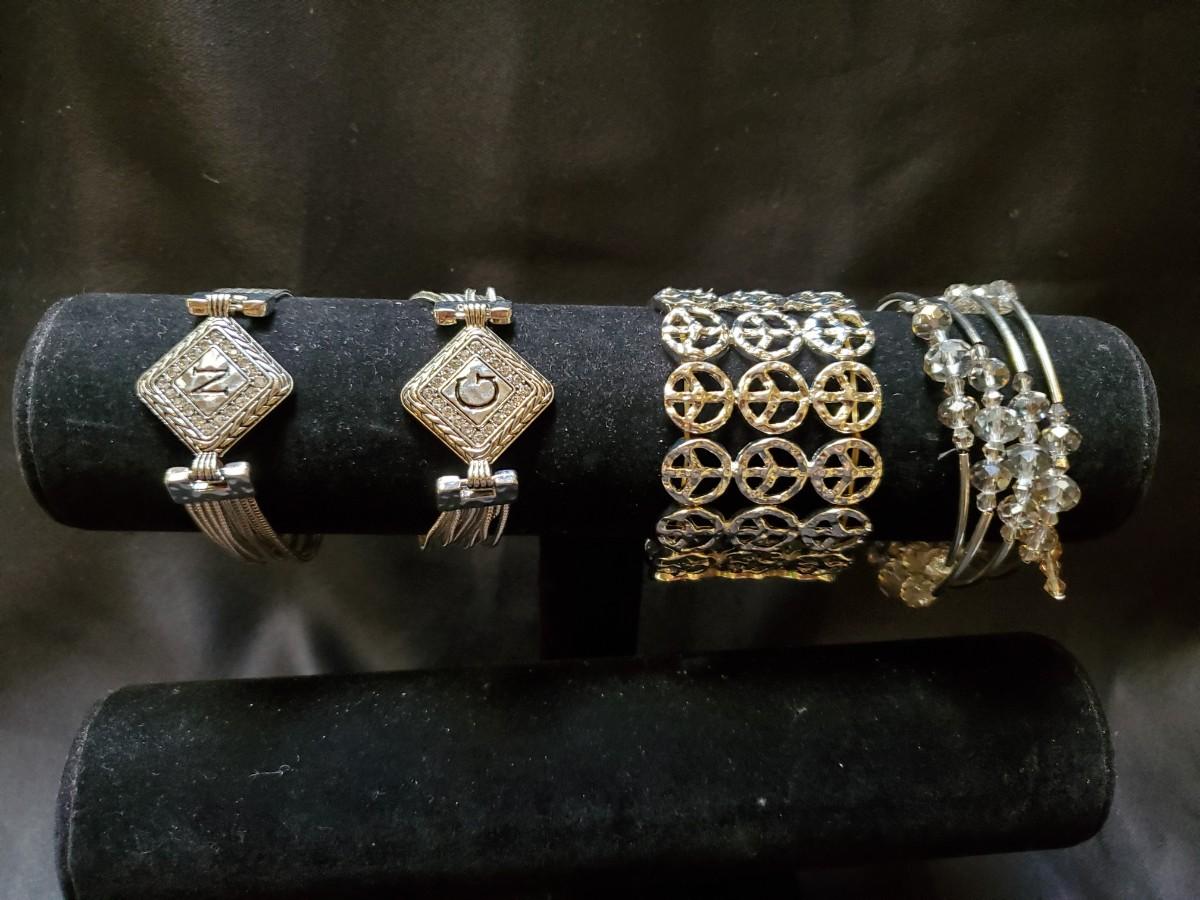 Lot of 4 Silvertone Bangle Fashion Bracelets