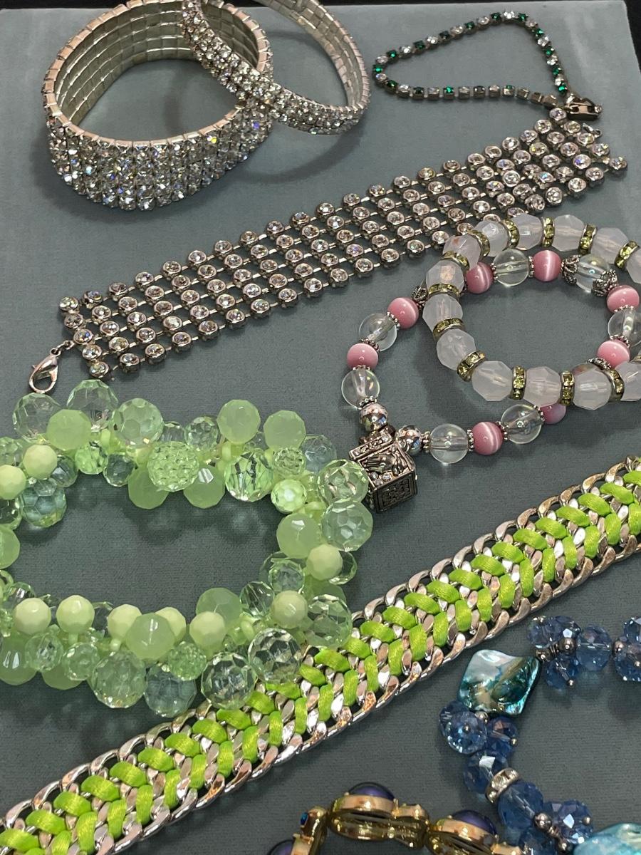 All jewelry items are enlarged to show details. Photography props are not included. Colors may vary based on the user’s screen.