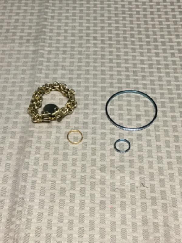 One set of blue bracelet and ring set, one gold ring and bracelet set