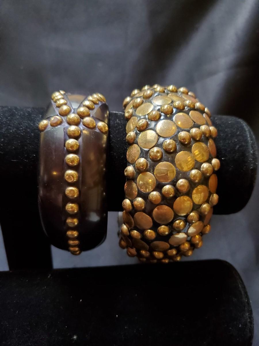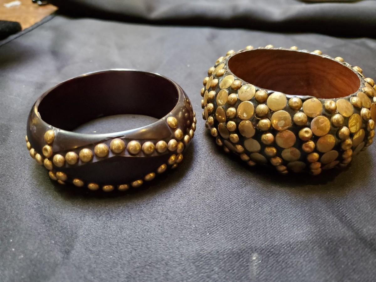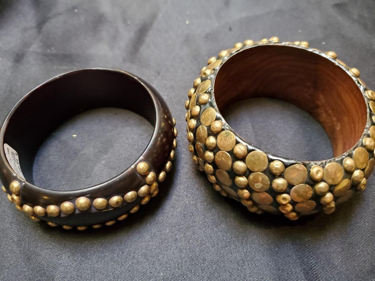 Set of 2 Brass and Wood Bangle Bracelet Set