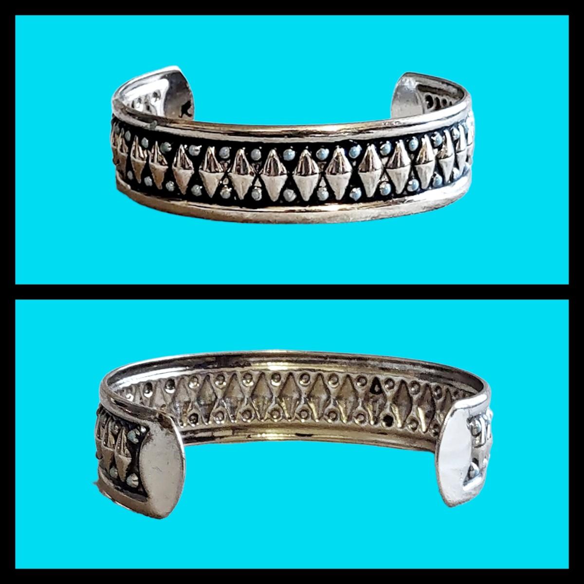 2. Silver Tone Metal w/ Turquoise Colored Accents Cuff Bracelet