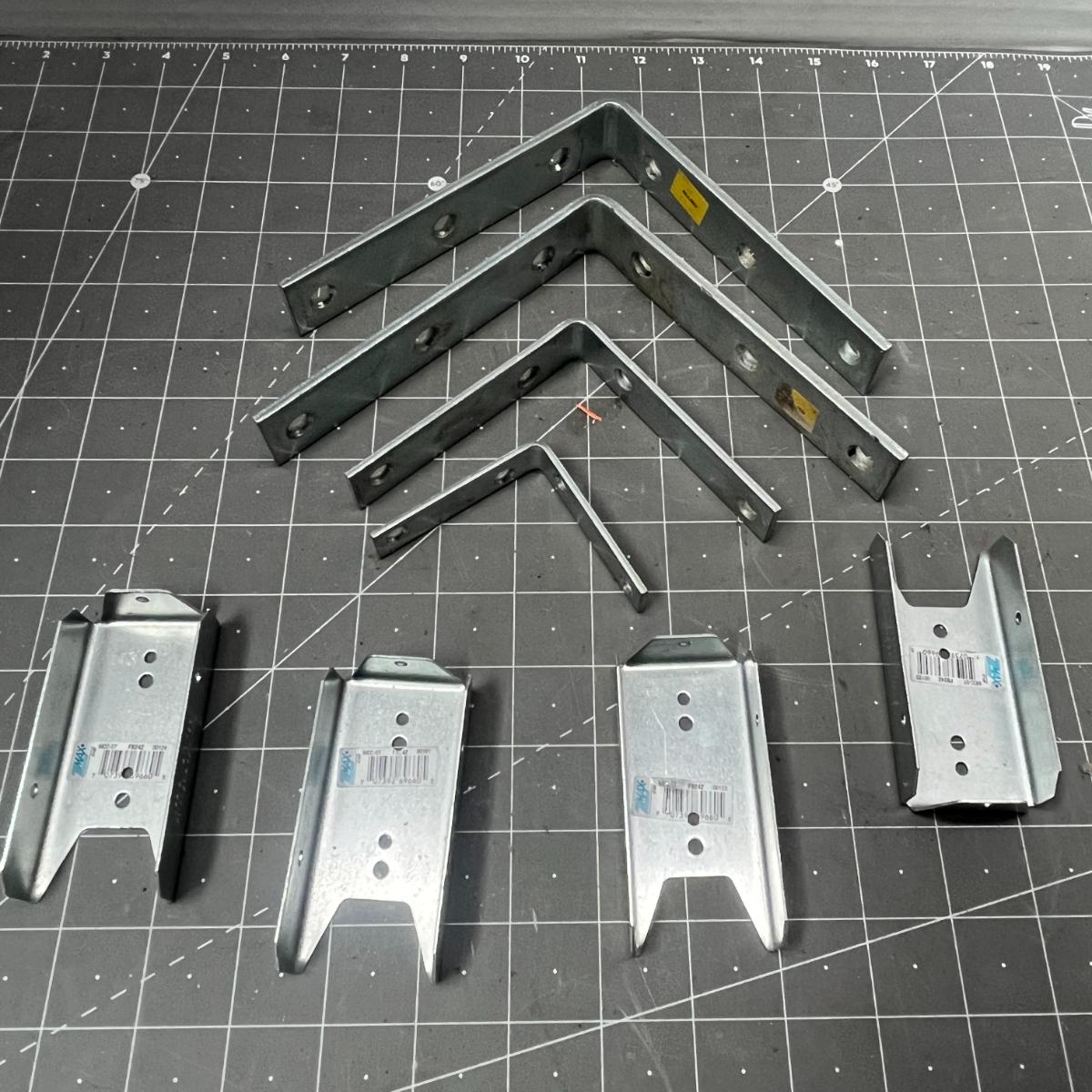 Includes L-brackets, corner braces, 4 clamps, 4 U-bolts.