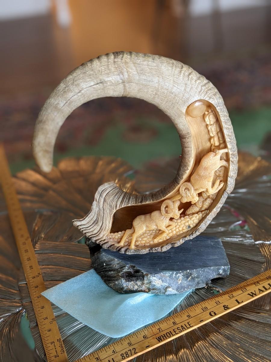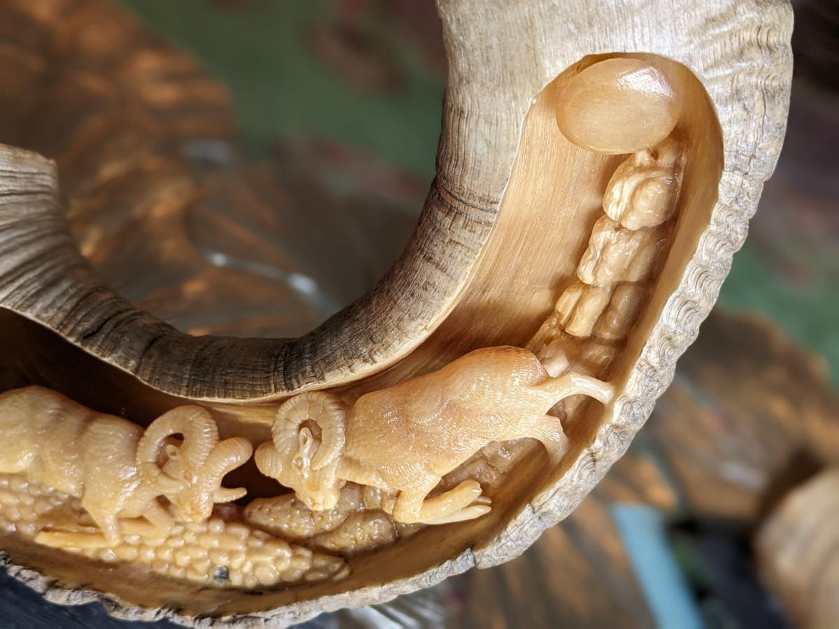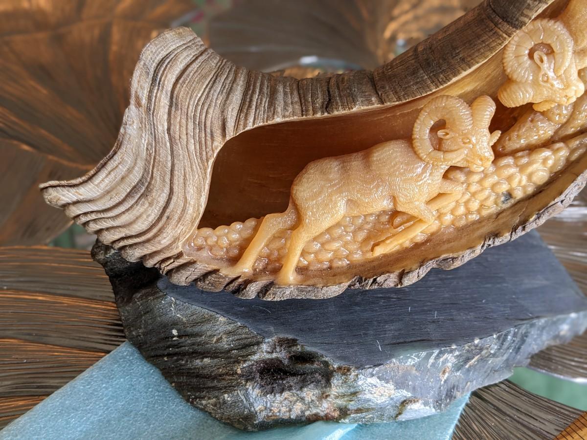 Brad Finch, Eagle River, Wi, "Night Duel" Horn Carving