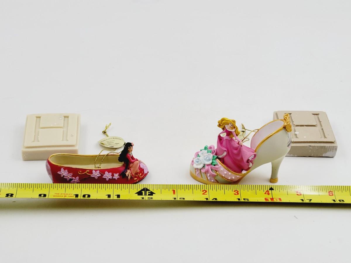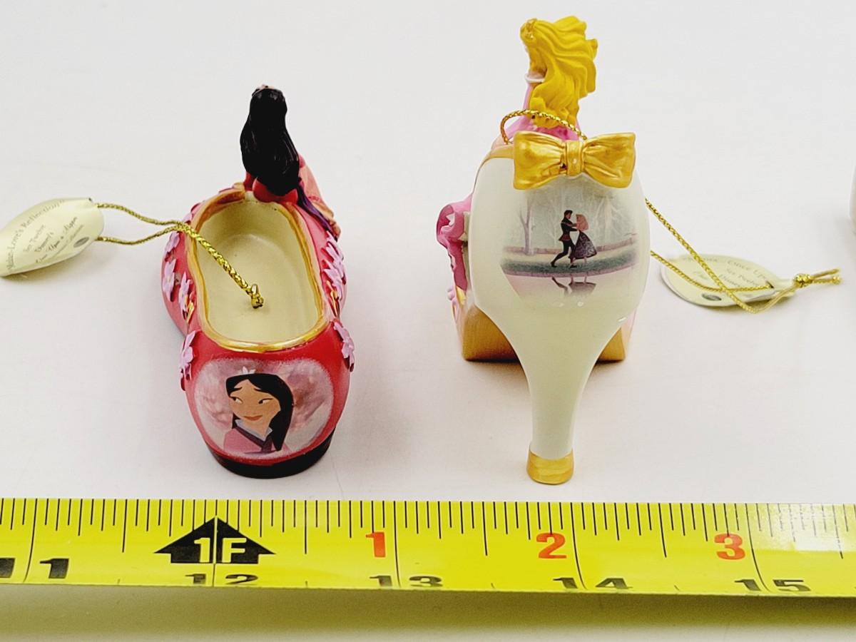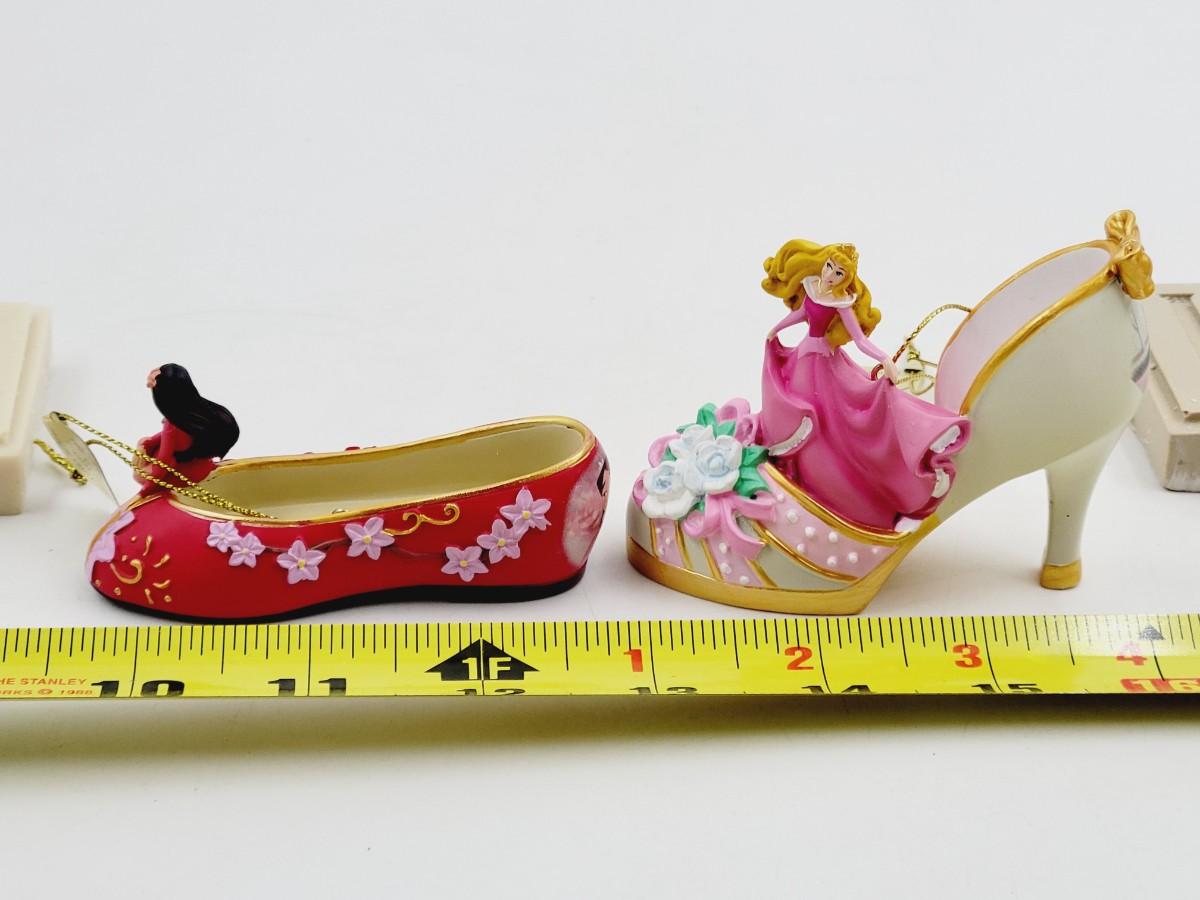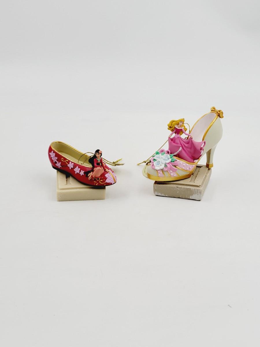 BRADFORD EXCHANGE DISNEY ONCE UPON A TIME SLIPPERS "MULAN & SLEEPING BEAUTY" ORNAMENTS