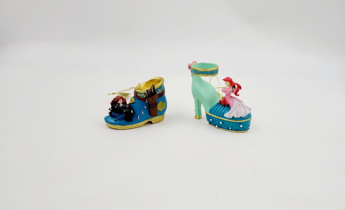 BRADFORD EXCHANGE DISNEY ONCE UPON A TIME SLIPPERS  "ARIEL & MERIDA" ORNAMENTS