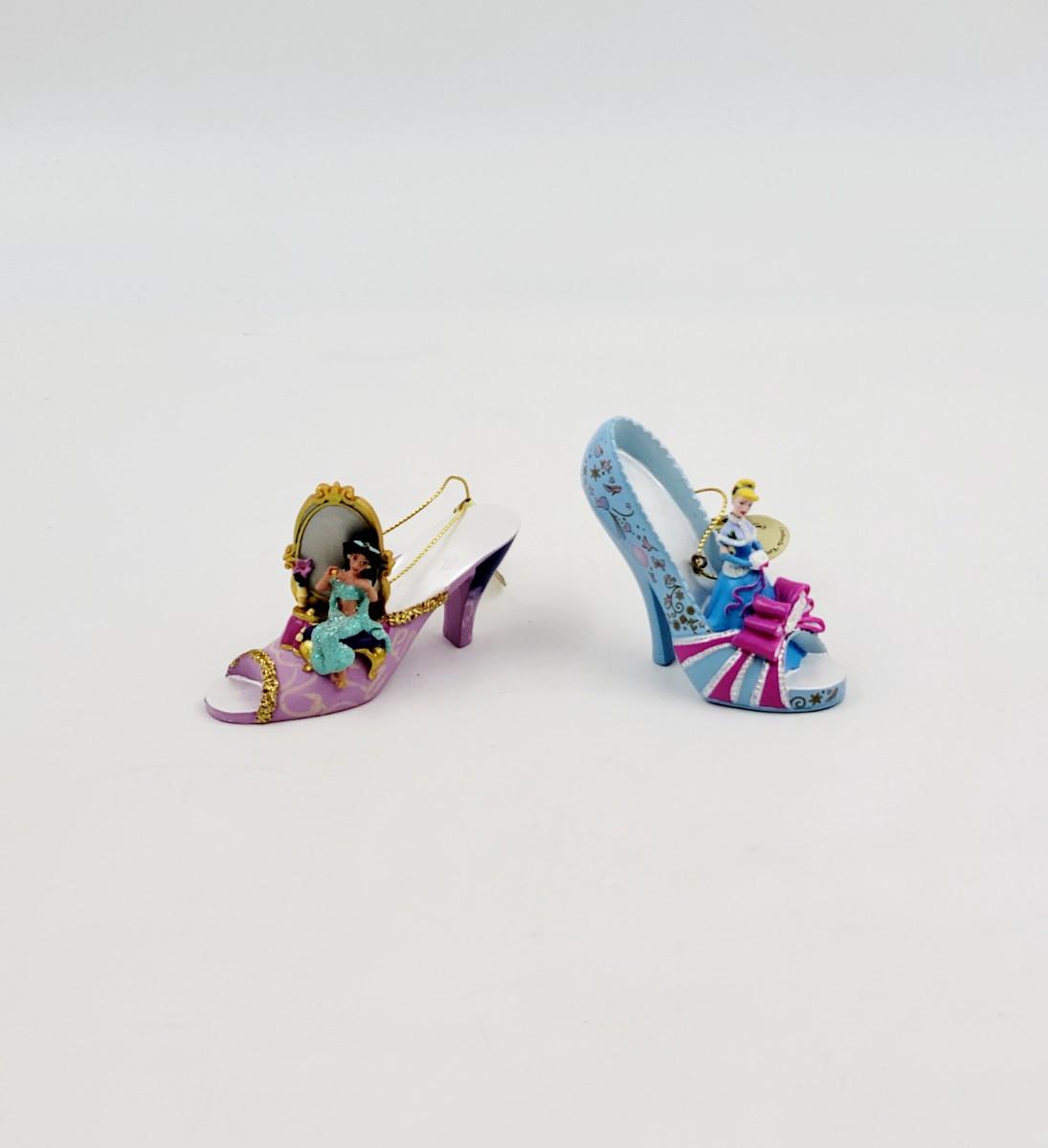 BRADFORD EXCHANGE DISNEY ONCE UPON A TIME SLIPPERS "CINDERELLA & JASMINE" ORNAMENTS