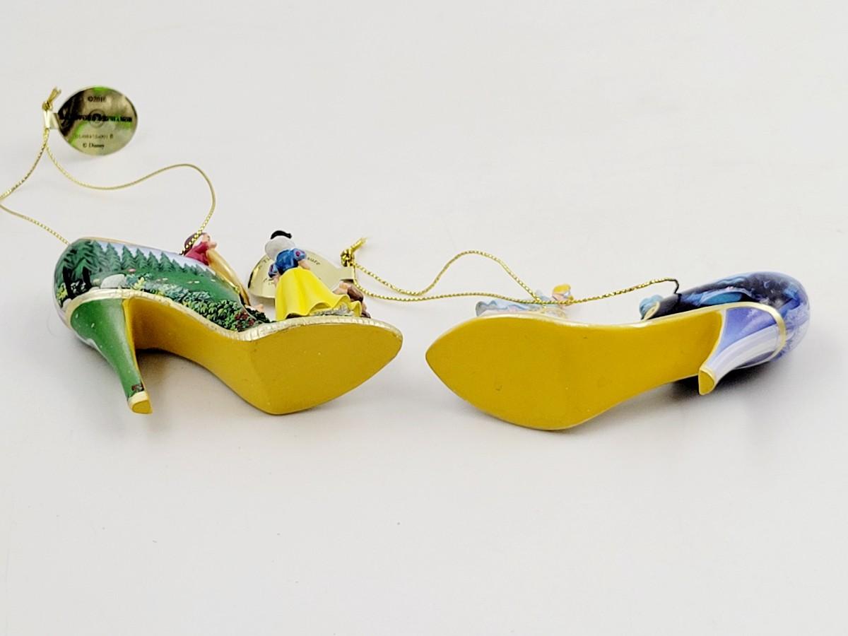 BRADFORD EXCHANGE DISNEY ONCE UPON A TIME SLIPPERS "CINDERELLA & SNOW WHITE" ORNAMENTS