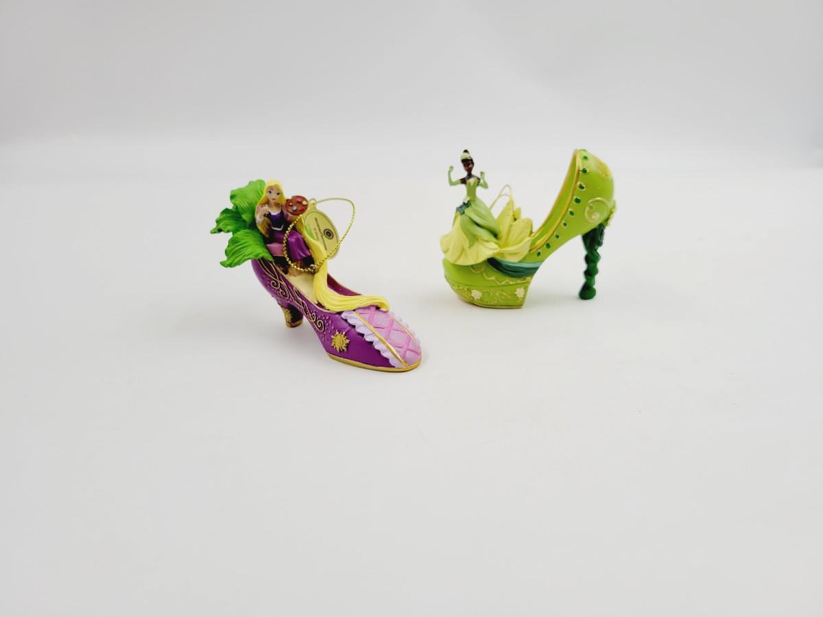 BRADFORD EXCHANGE DISNEY ONCE UPON A TIME SLIPPERS "TIANA & RAPUNZEL" ORNAMENTS