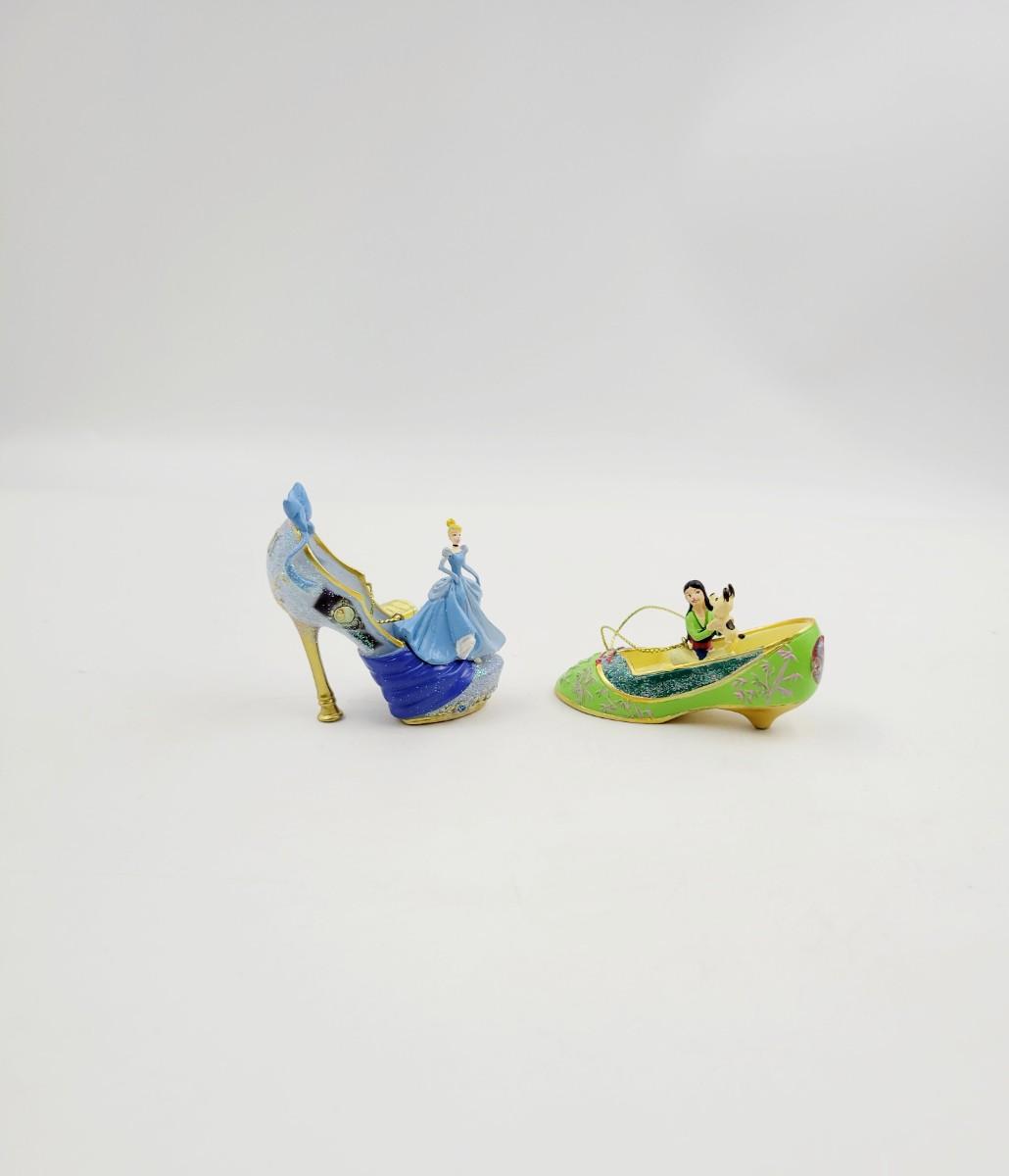 BRADFORD EXCHANGE DISNEY ONCE UPON A TIME SLIPPERS "MULAN & CINDERELLA" ORNAMENTS