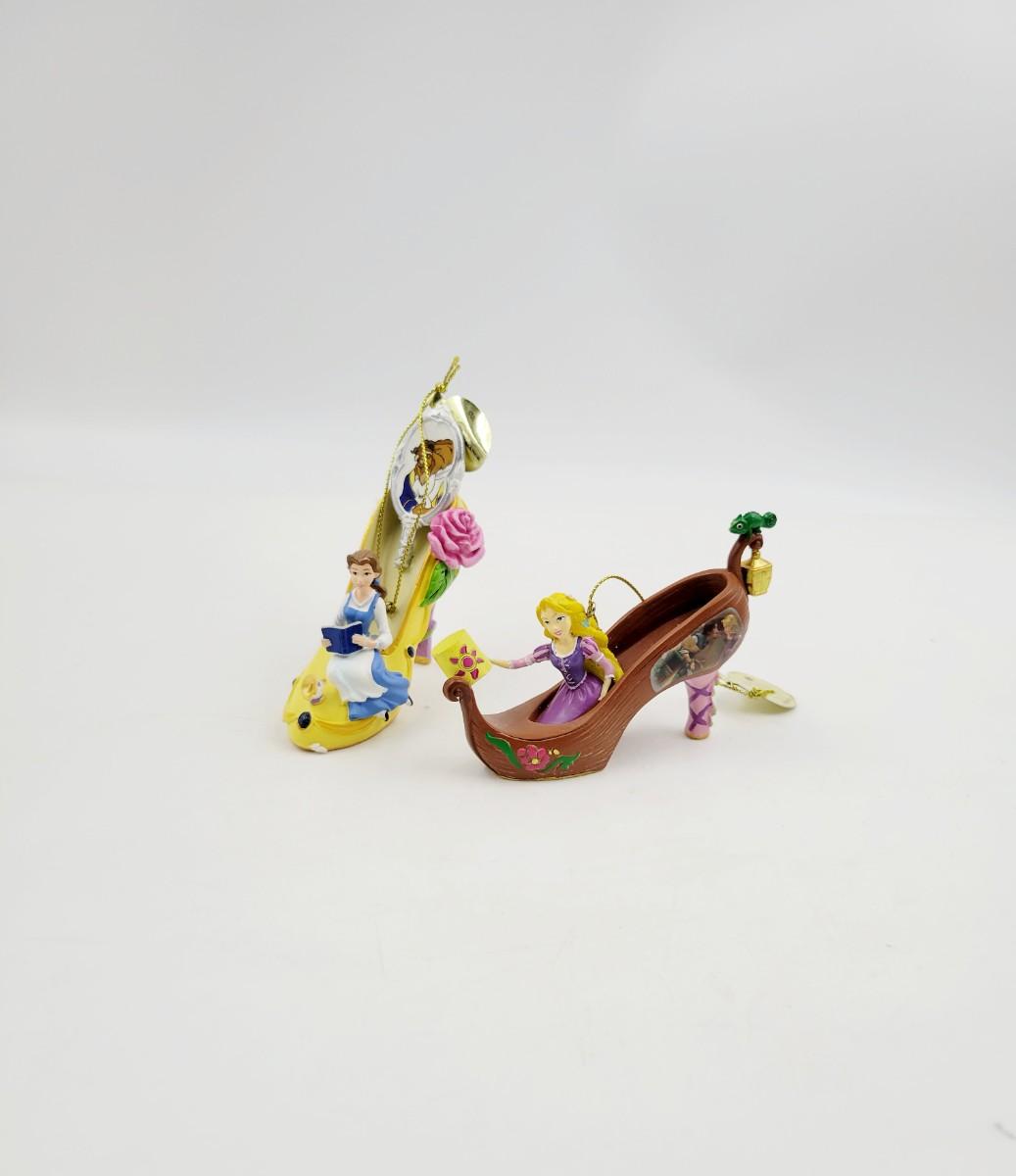 BRADFORD EXCHANGE DISNEY ONCE UPON A TIME SLIPPERS "BELLE & RAPUNZEL" ORNAMENTS