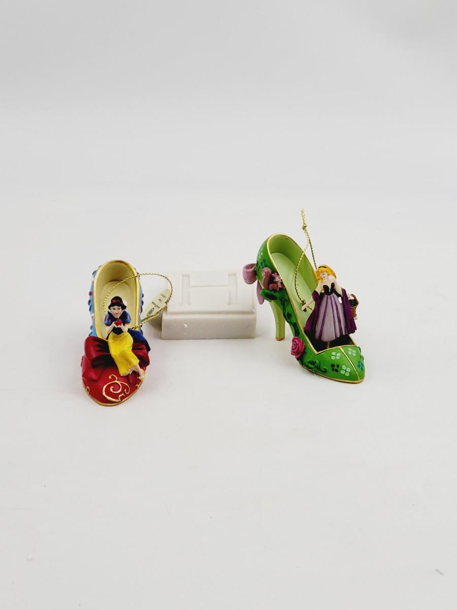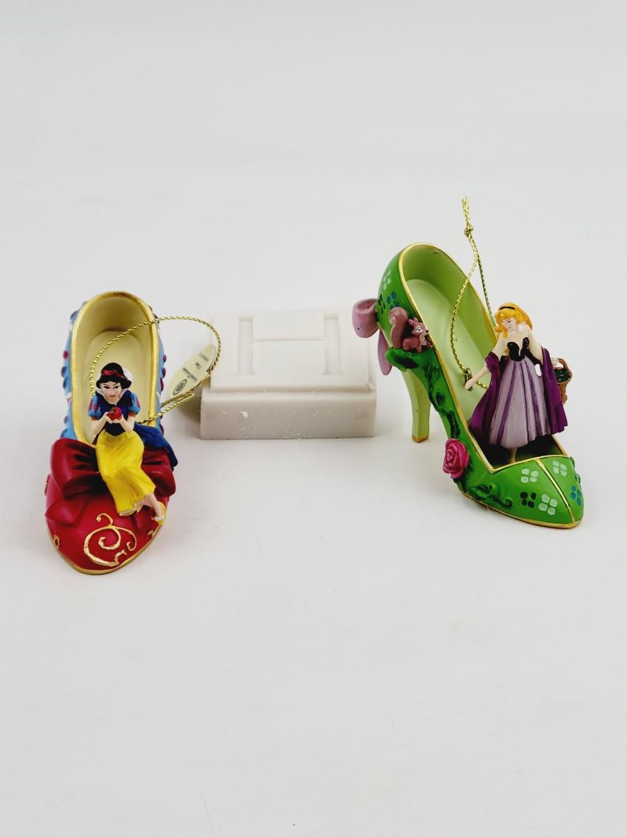BRADFORD EXCHANGE DISNEYS ONCE UPON A TIME SLIPPER "SNOW WHITE & AURORA" ORNAMENT