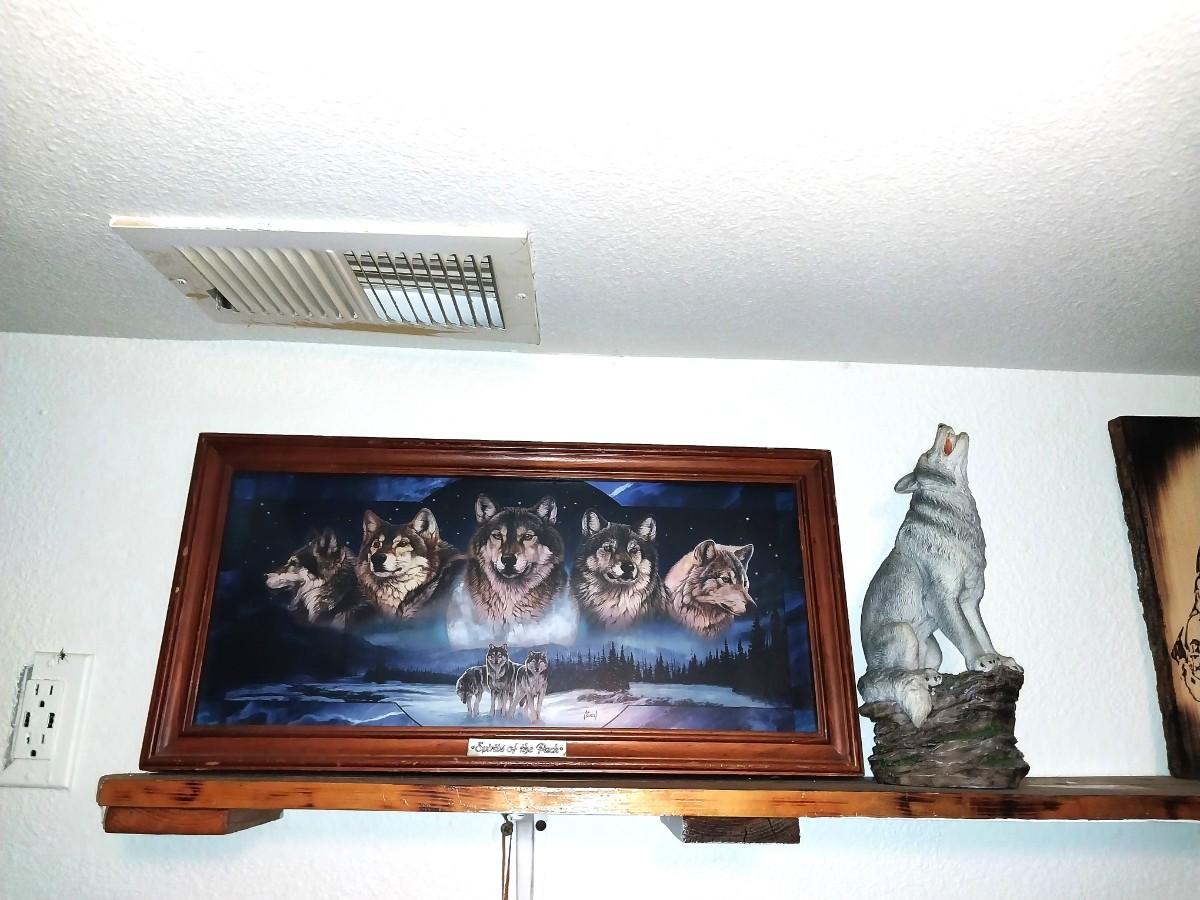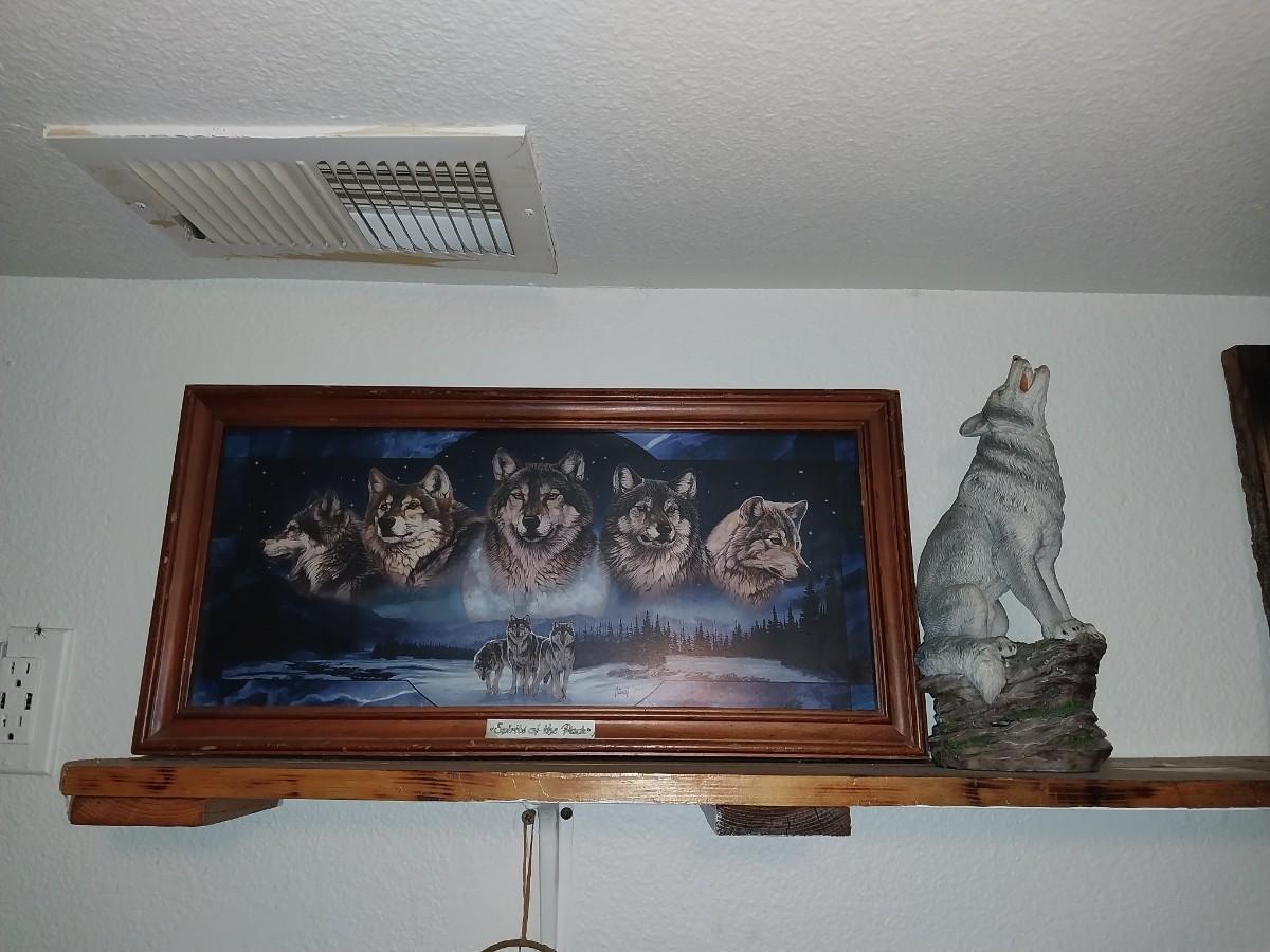 23X11, AND COYOTE FIGURINE APPROX.12" TALL
