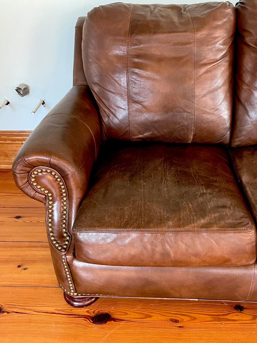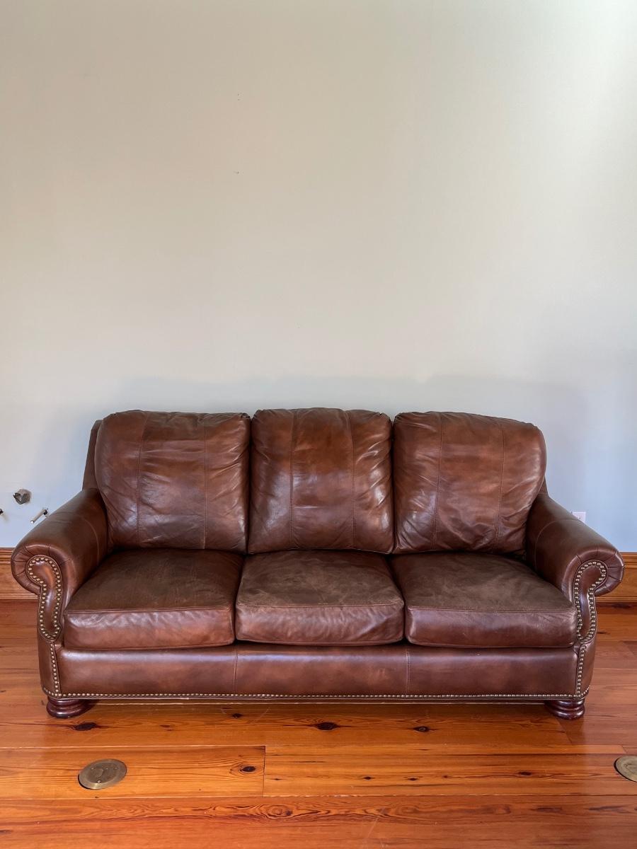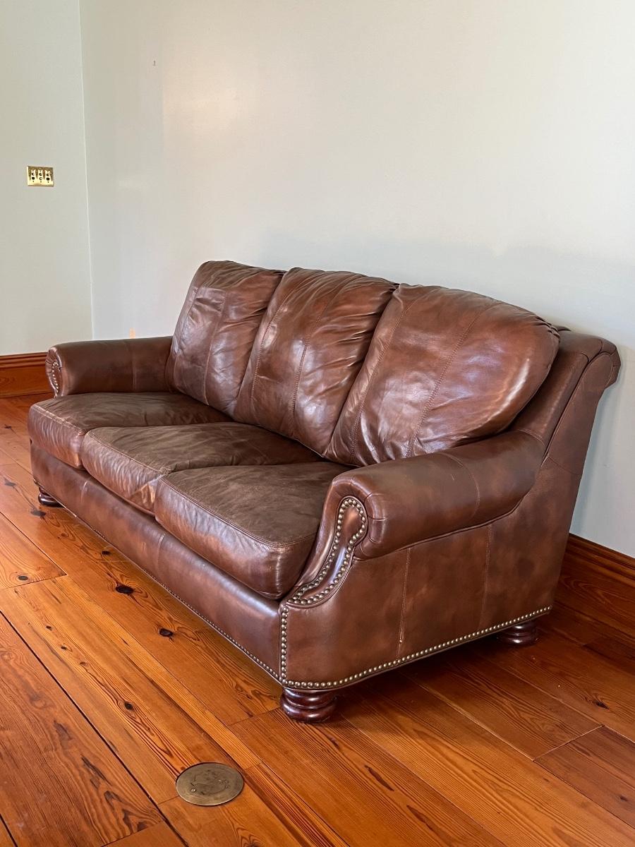 BRADINGTON YOUNG ~ Brown Leather Sofa ~ With Nailhead Trim ~ *Read Details