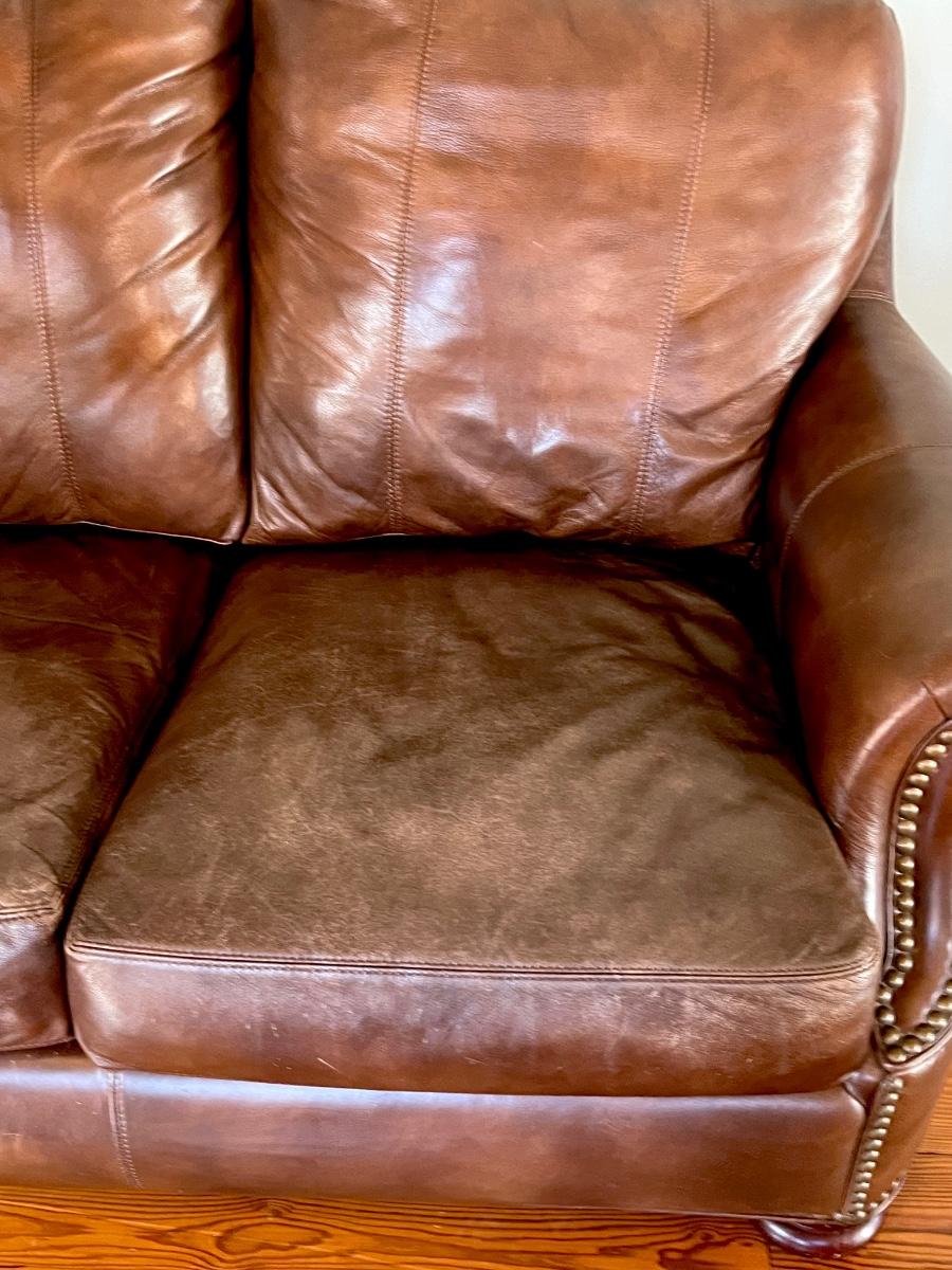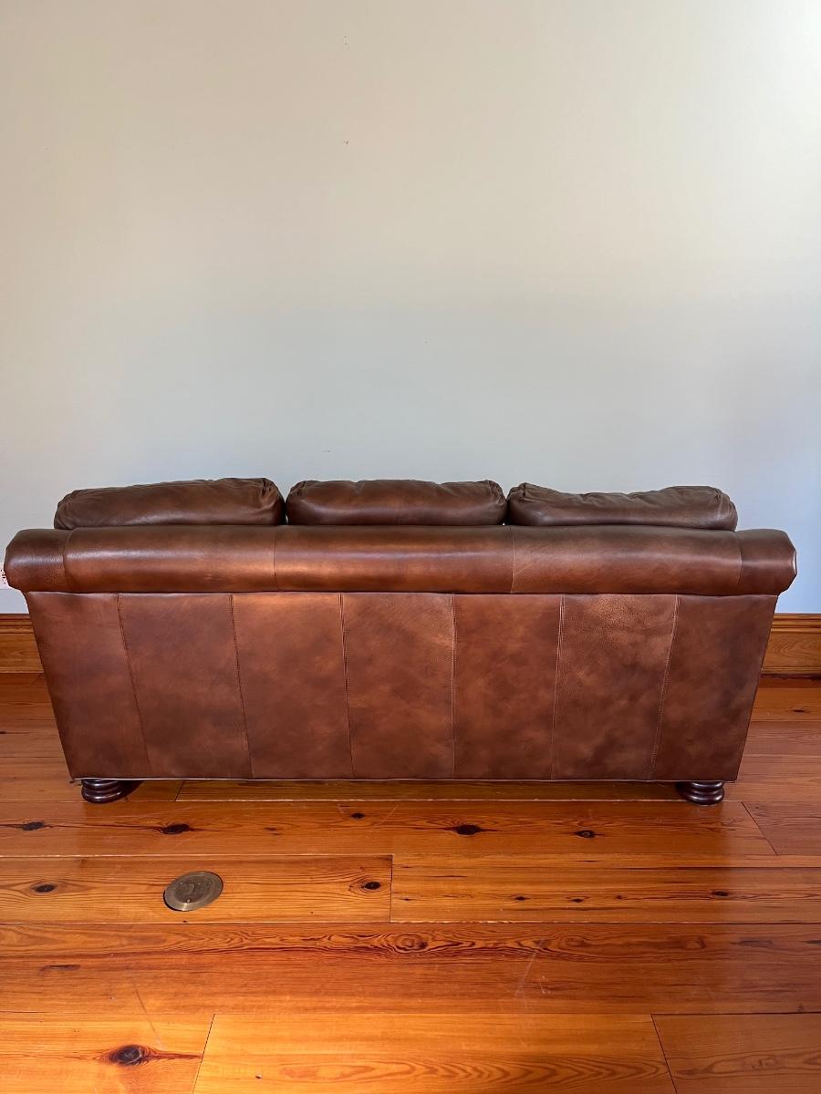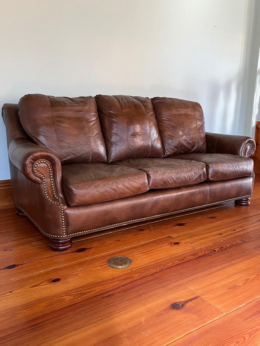 BRADINGTON YOUNG ~ Brown Leather Sofa ~ With Nailhead Trim ~ *Read Details