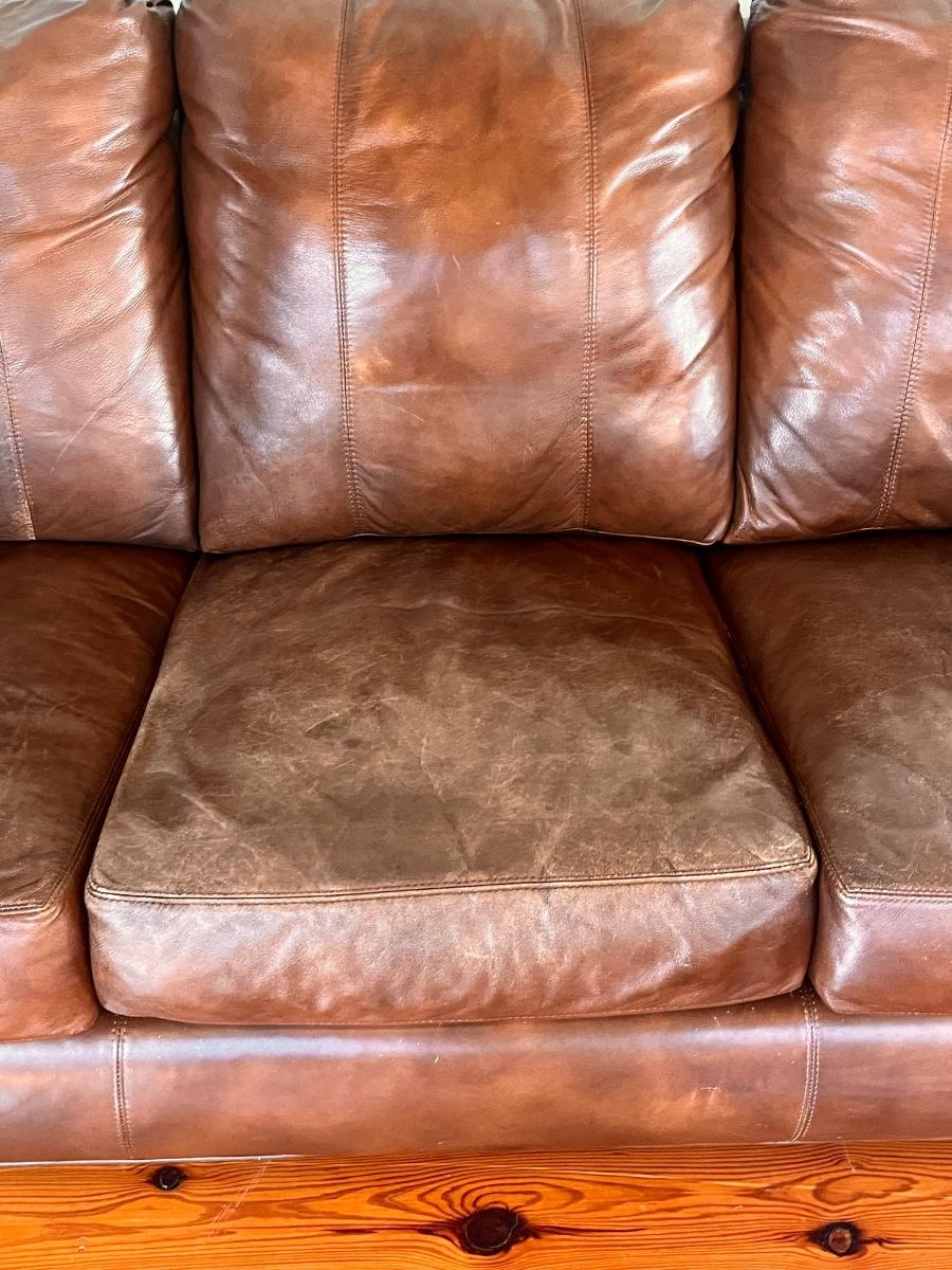 37” H x 87” W x 40” ~ Perfect for the man cave, has lots of wear on seats as seen in photos ~ No tears or holes