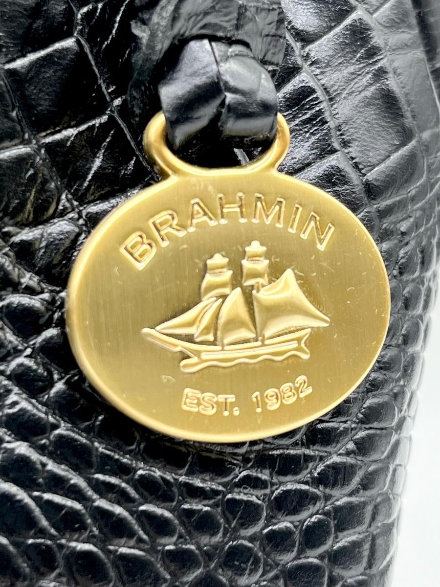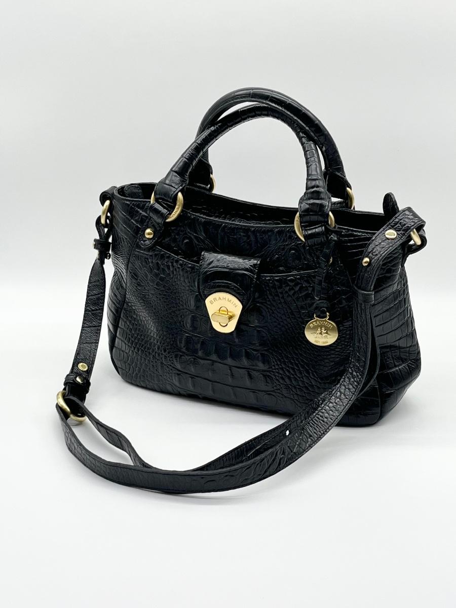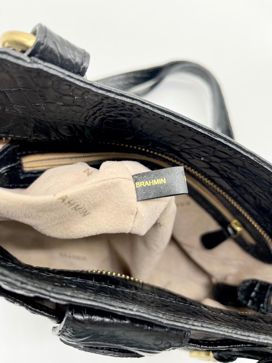BRAHMIN ~ Claudia ~ Black Croc Embossed Leather Crossbody/Tote