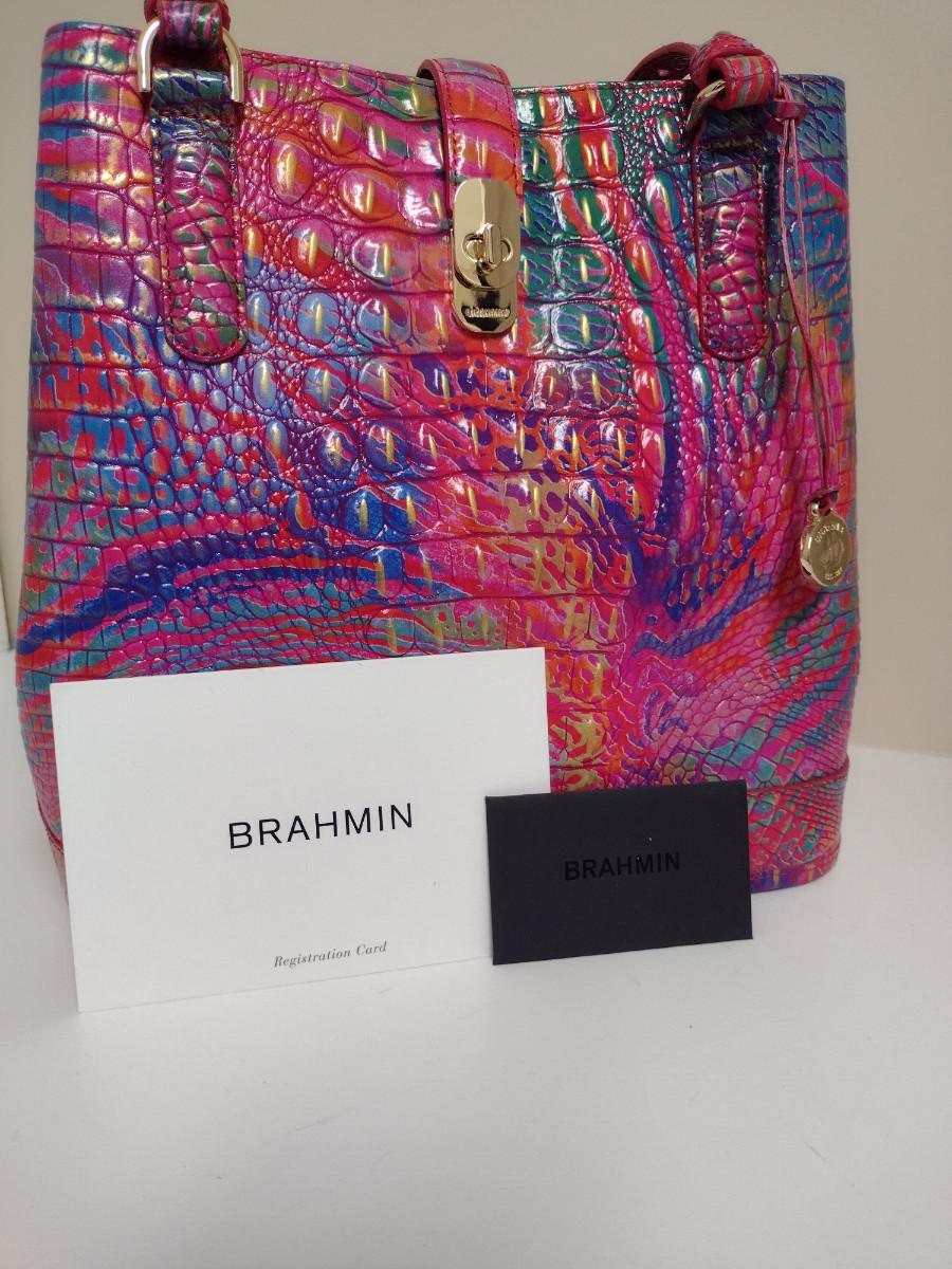 Brahmin Embossed Genuine Leather Handbag- Fiora Rainbow Fish Design from Melbourne Collection- New with Tag and Dust Bag