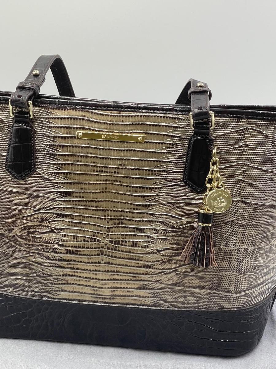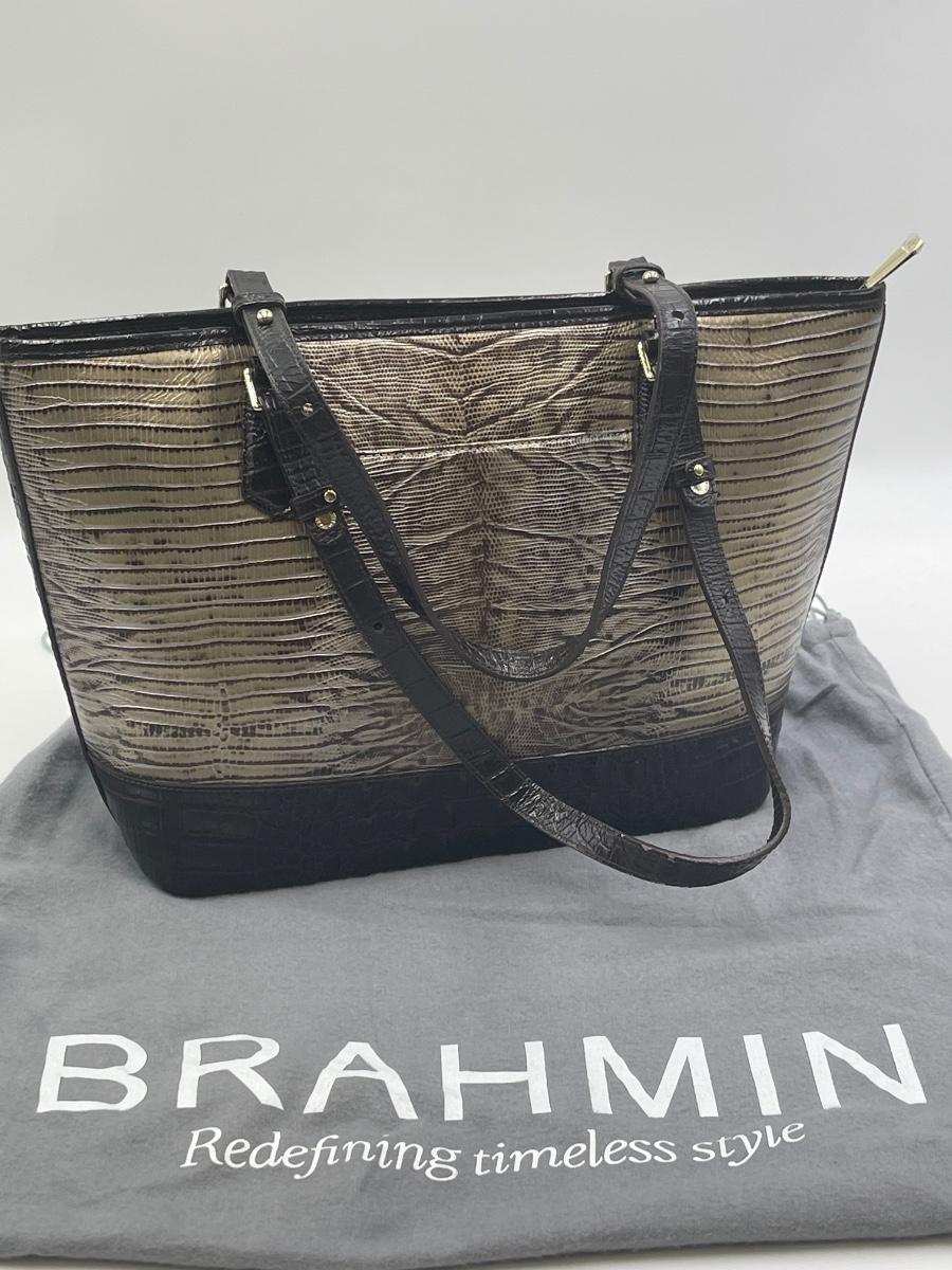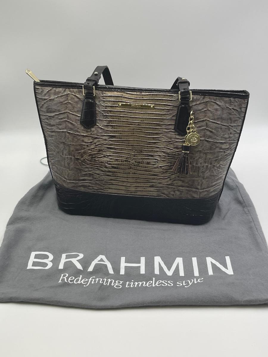 BRAHMIN ~ Armor Pennfield Asher Gold Brown Leather Handbag ~ Like New