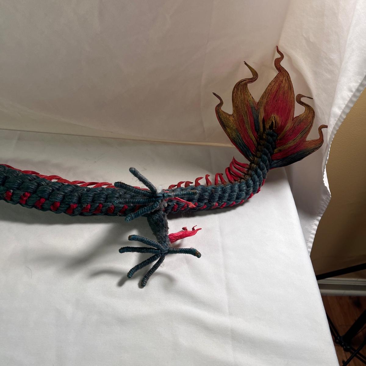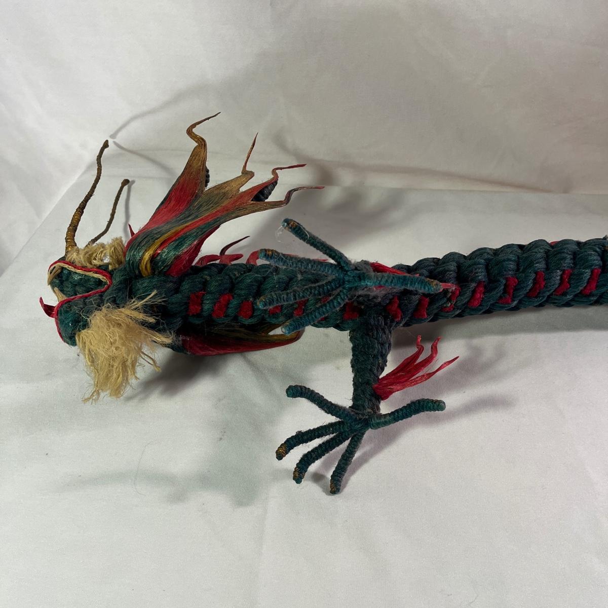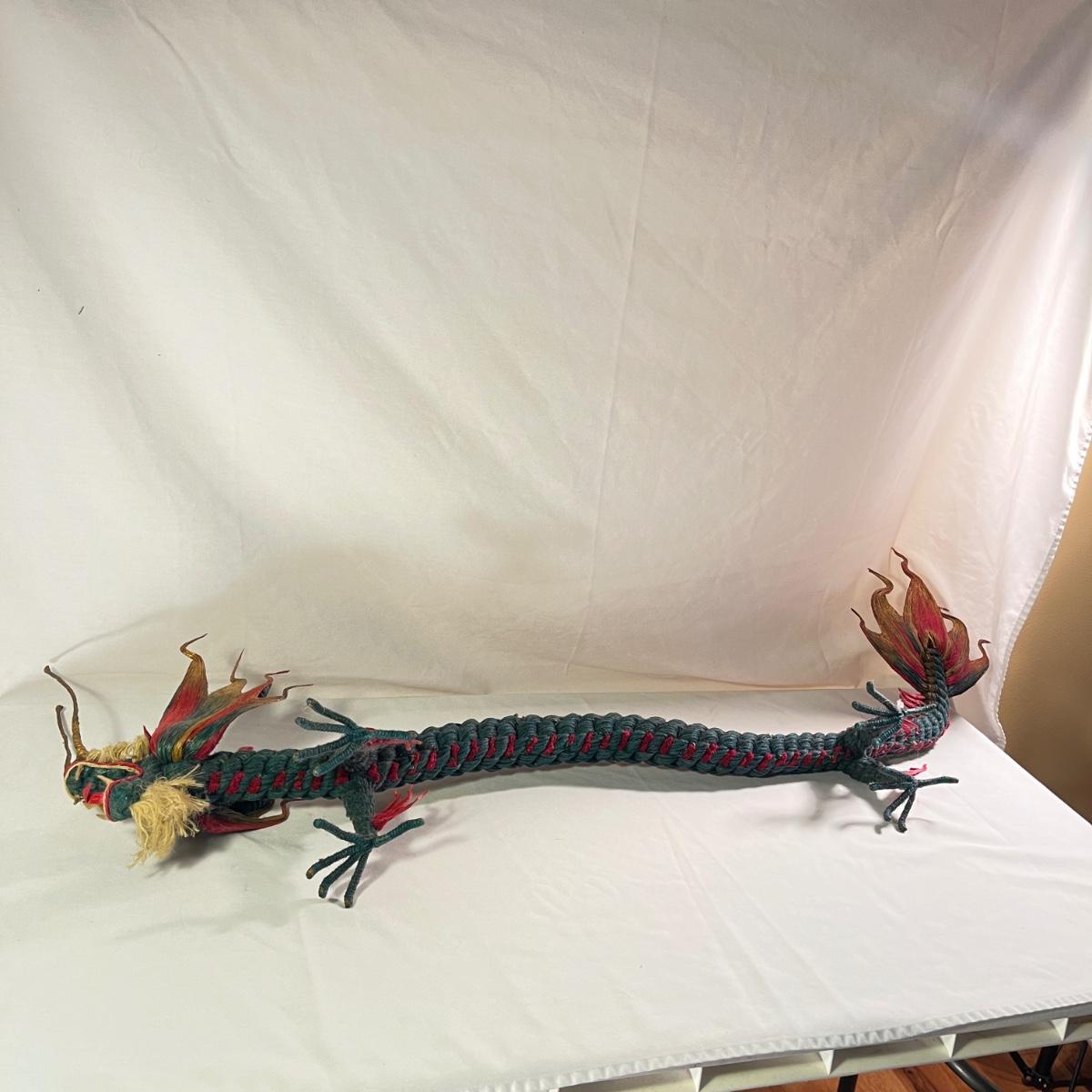 Lot includes a braided rope lucky dragon. Dragon measures 46” x 7” x 13”H.