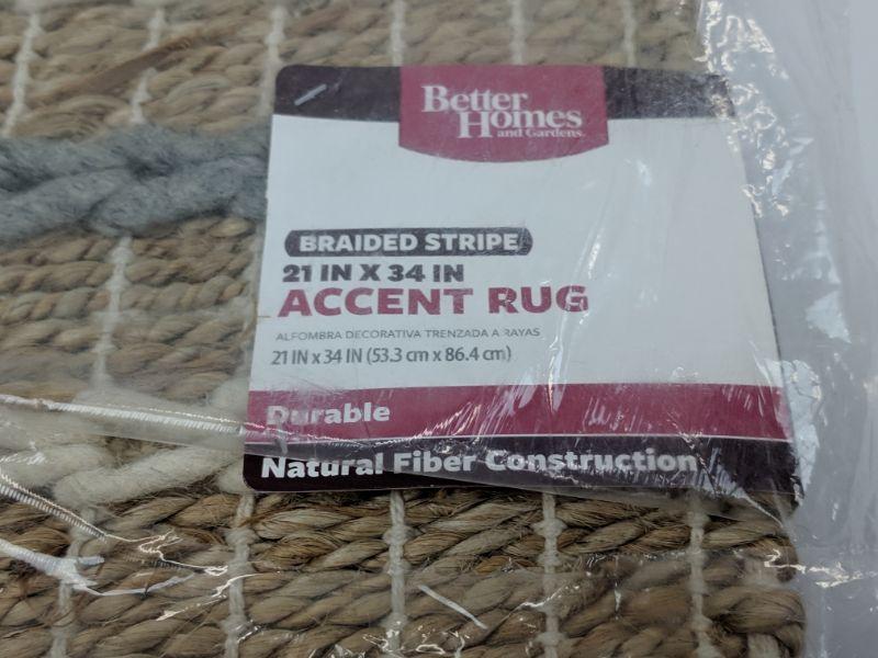 Braided Stripe Accent Rug, 21x34 in, Durable, Natural Fiber Construction - New