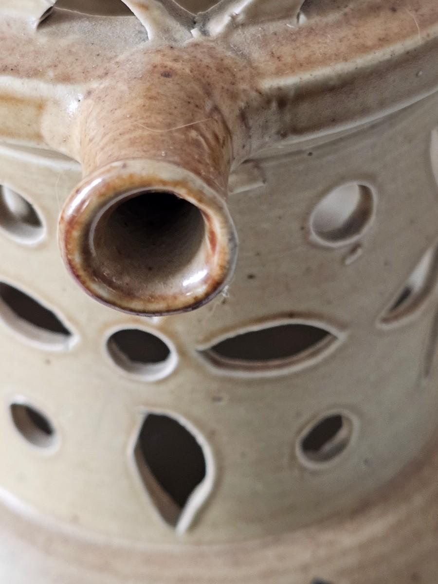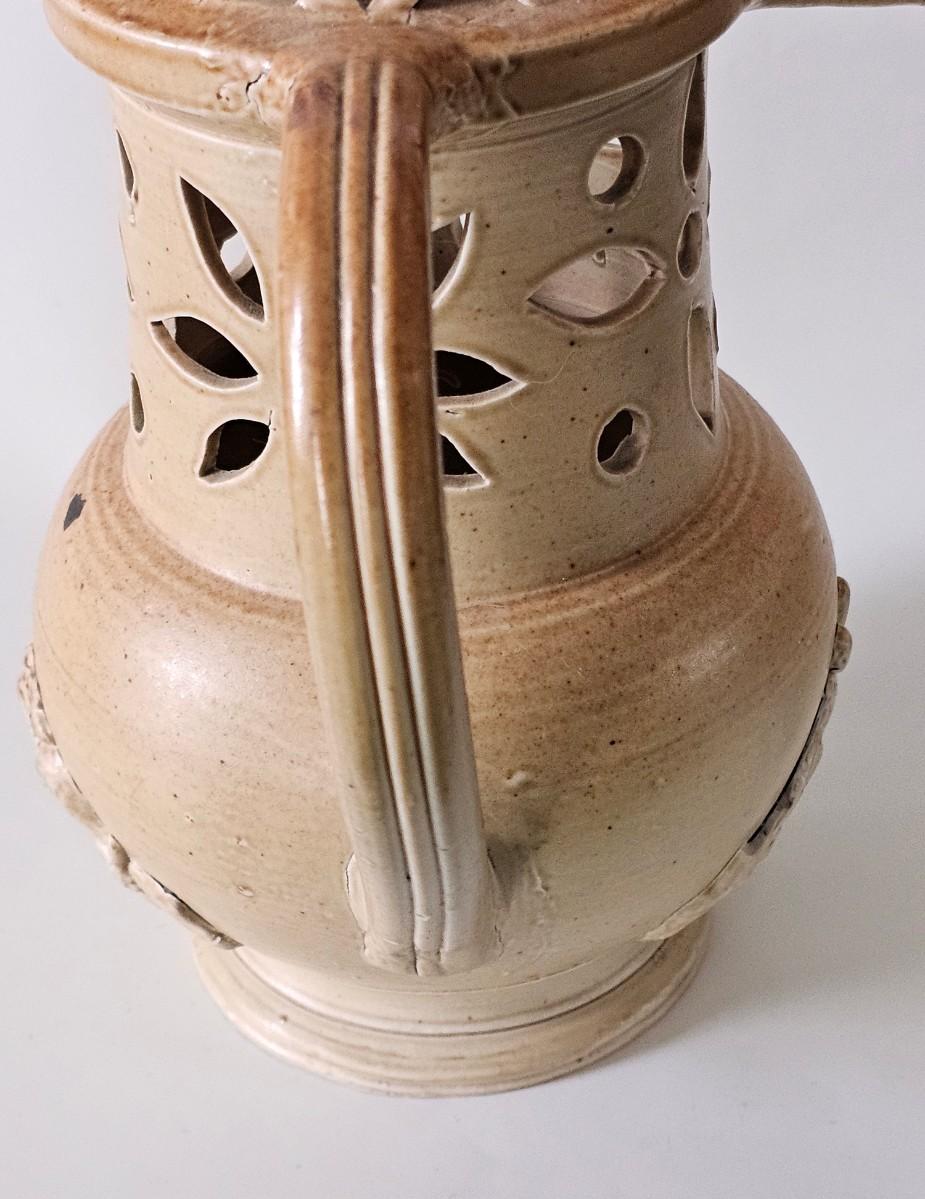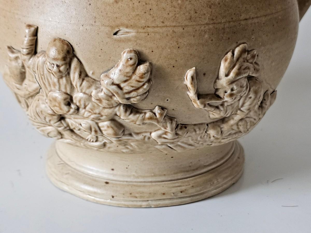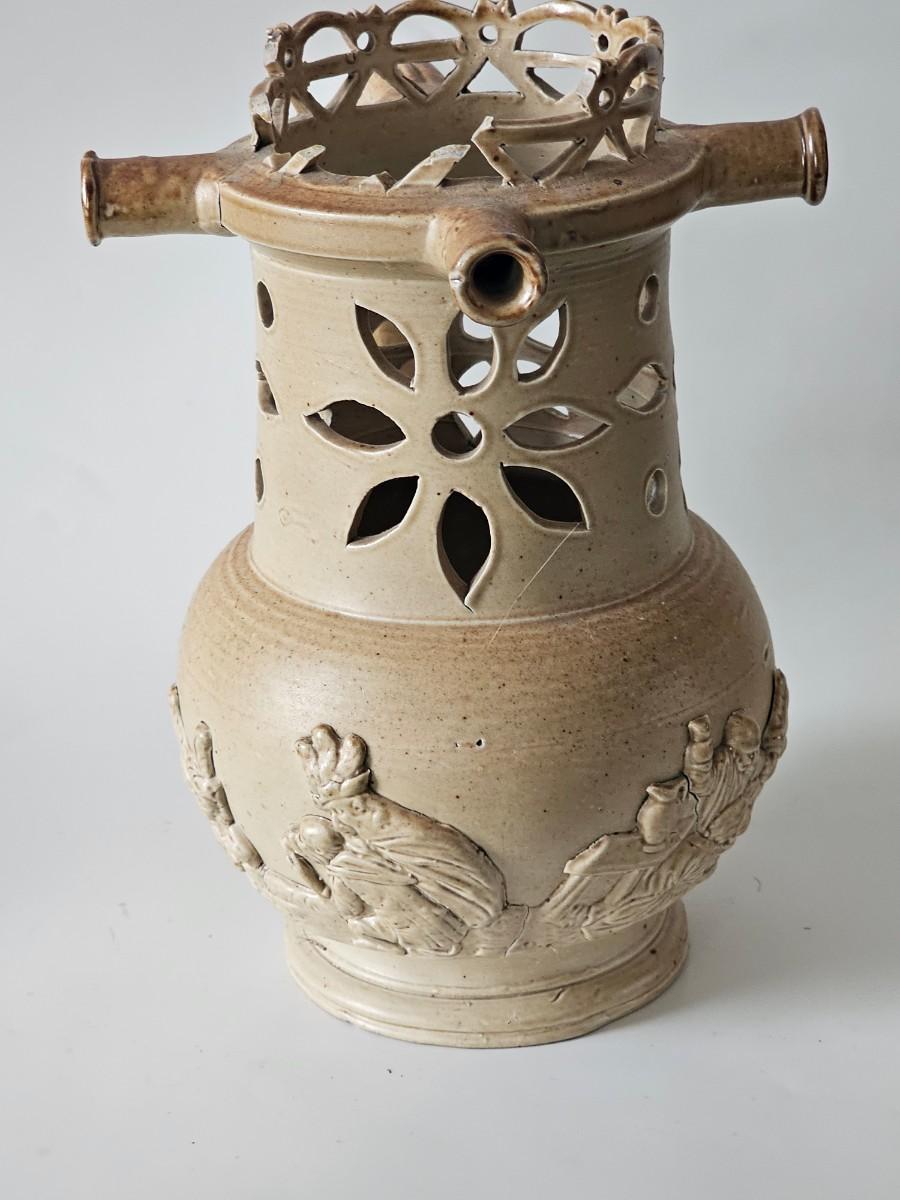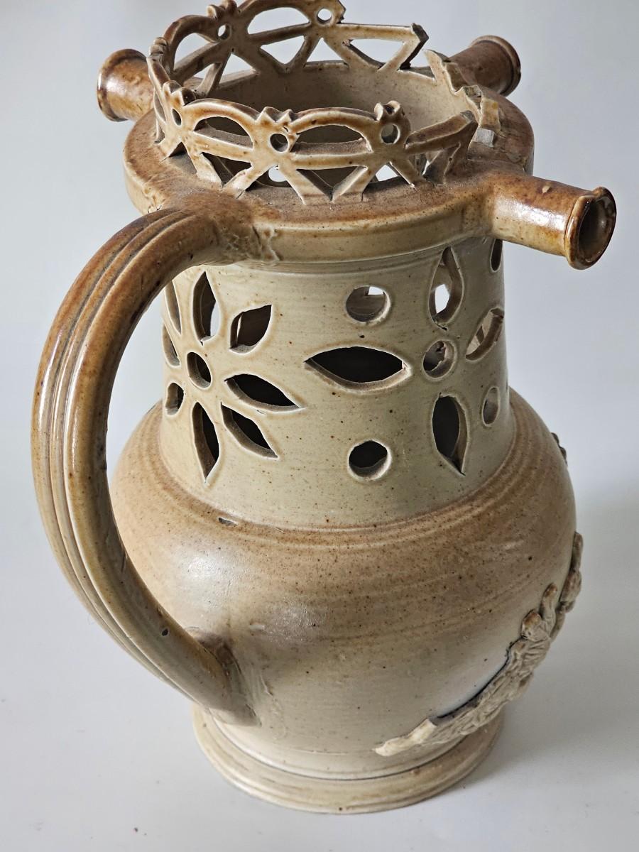 This amazing puzzle jug features beautiful relief pottery and has losses to the top, note in photos