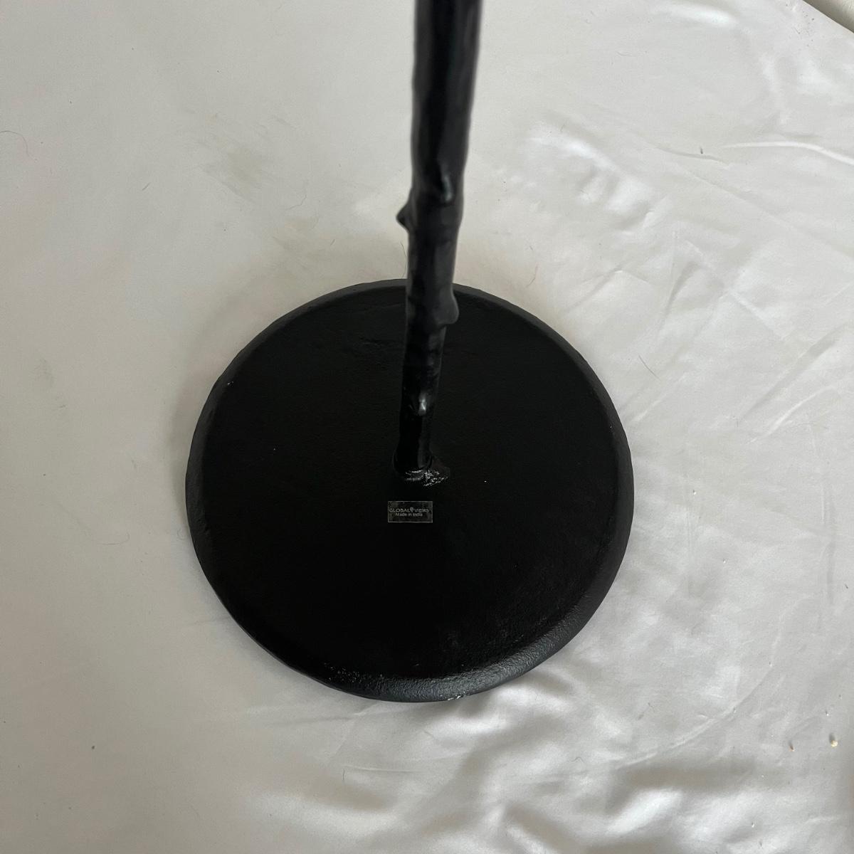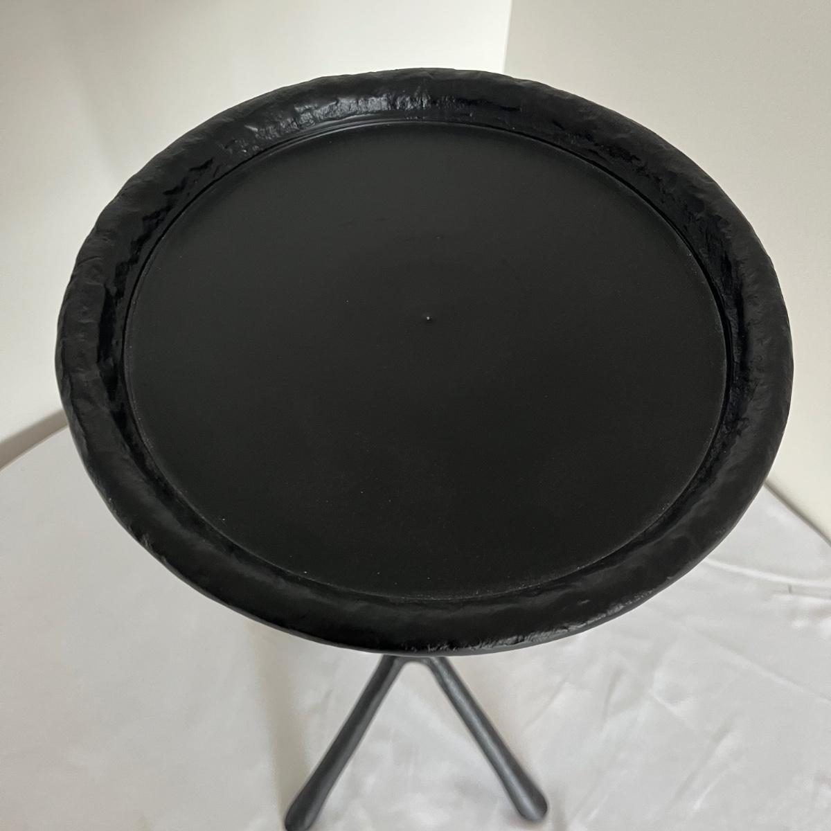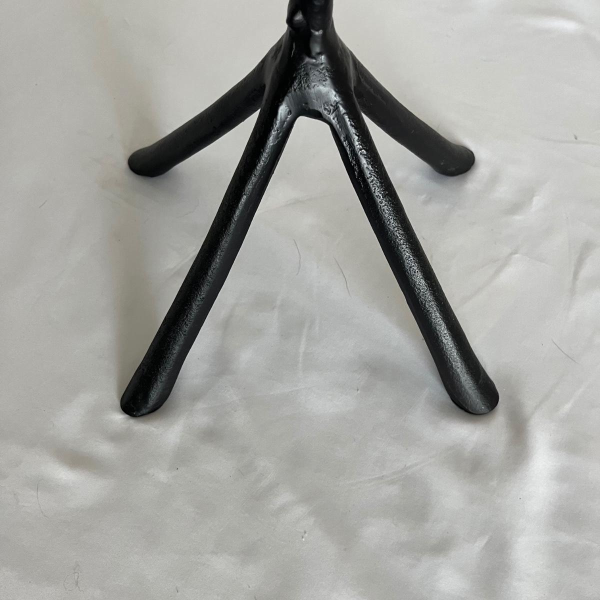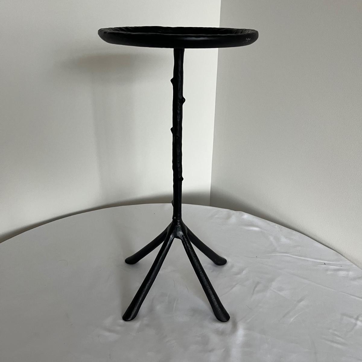Lot includes a made in India side table with the legs made to look like a branch. Table appears to be painted aluminum. Table measures 10.5”D x 22” tall. Table has a spot that the paint was rubbed off, see pictures.