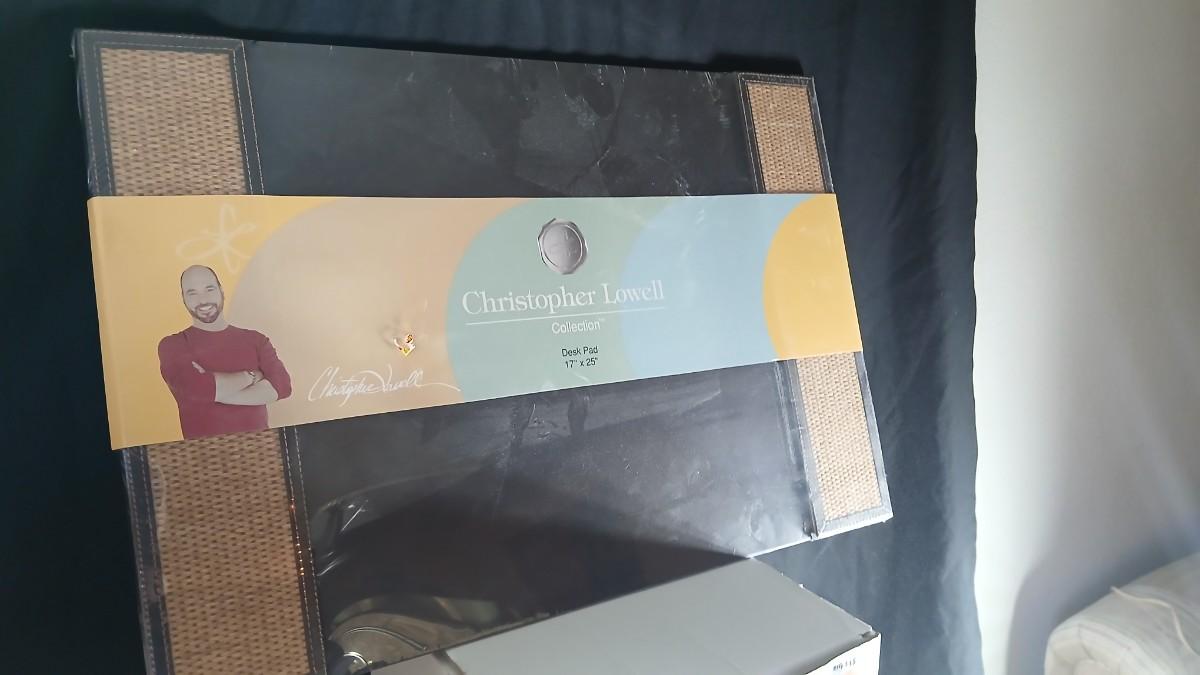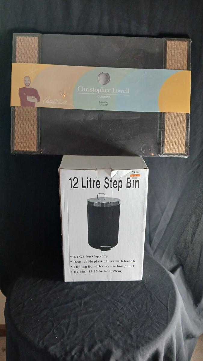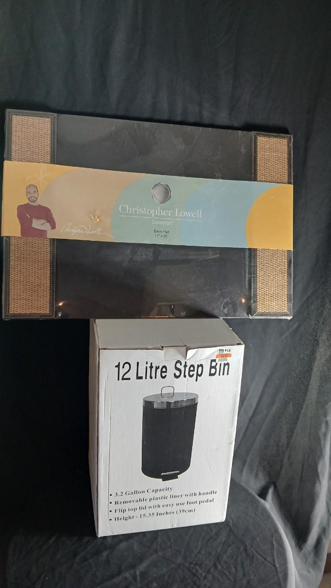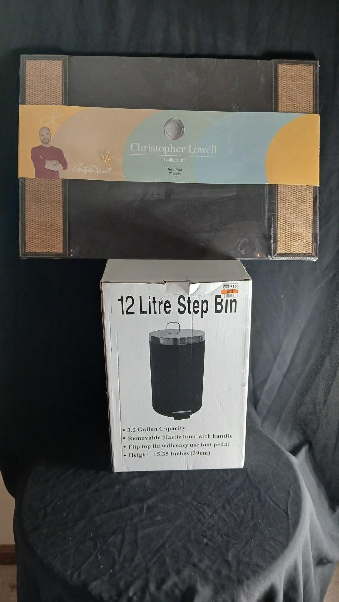 Brand new 12 litre step bin trash can with Christopher Lowell Collection desk pad 17" X 25"