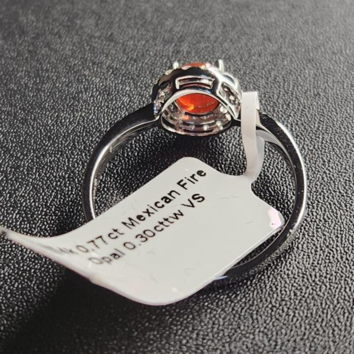 14k white gold mexican fire opal diamonds ring 1.07cttw