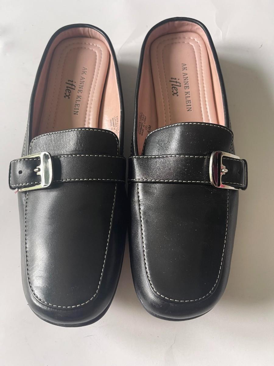 Upgrade your footwear collection with timeless elegance and comfort! Up for auction is a brand new pair of AK Anne Klein iflex black leather loafers, perfect for any occasion.