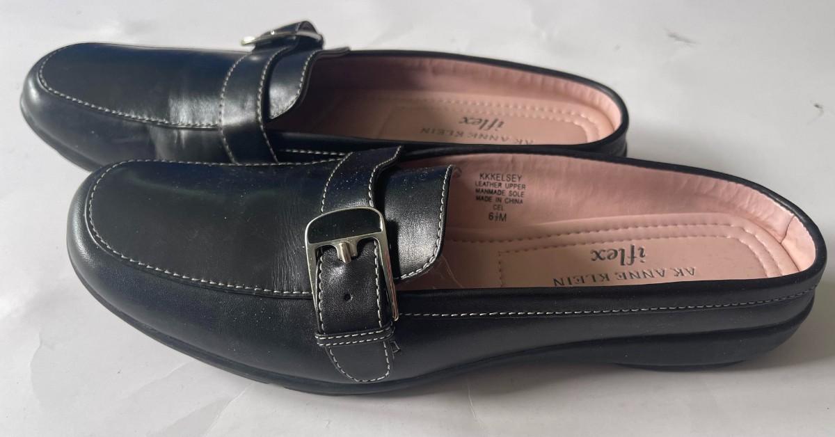 Upgrade your footwear collection with timeless elegance and comfort! Up for auction is a brand new pair of AK Anne Klein iflex black leather loafers, perfect for any occasion.